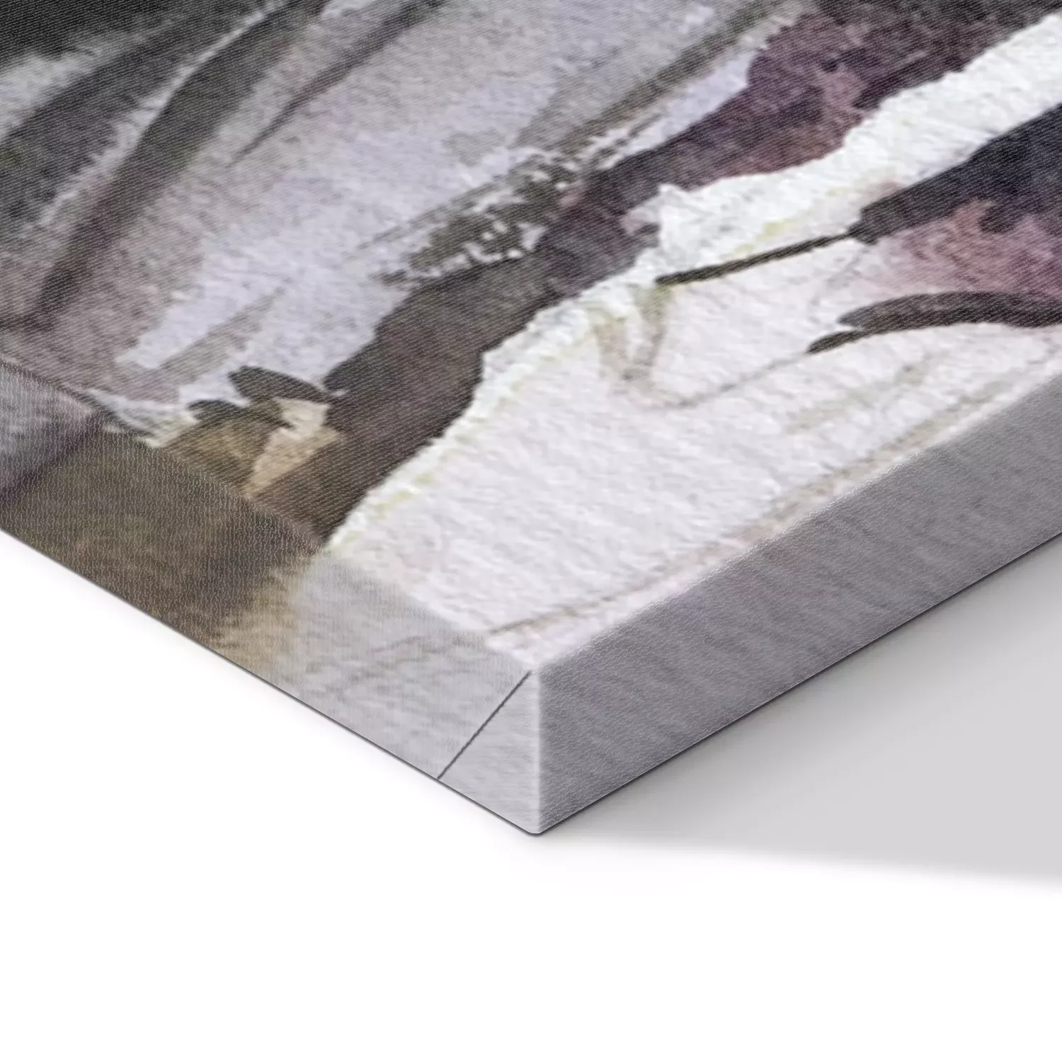 Das Motiv wird auf eine qualitativ hochwertige Leinwand gedruckt, die auf einen Blendrahmen gezogen wird. Da der Aufdruck die Seitenkanten bedeckt, muss das Bild nicht zusätzlich eingerahmt werden. Wir empfehlen außerdem Kompositionen aus mehreren Bildern, die ein harmonisches Ganzes bilden.