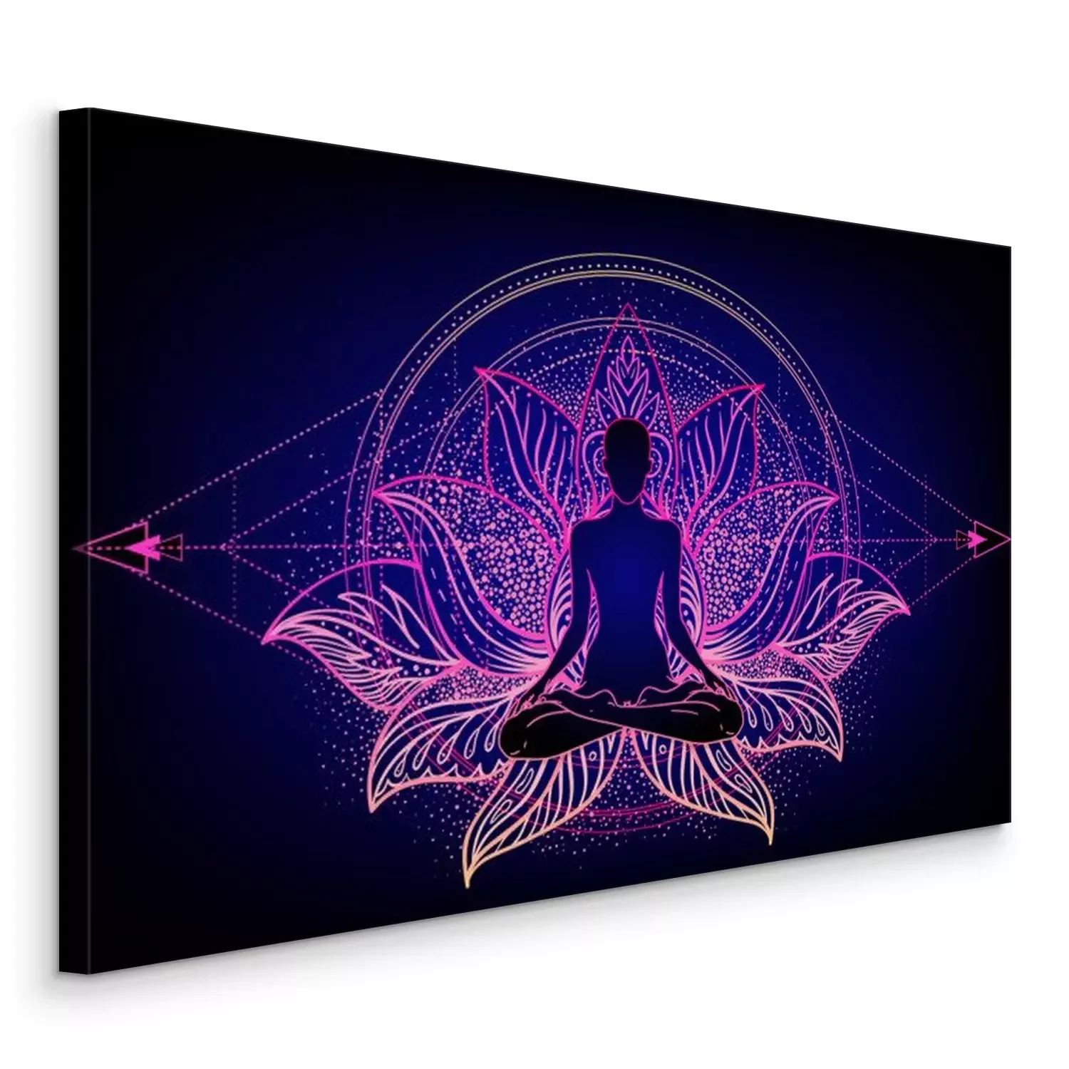 Bild Menschliche Silhouette im Lotussitz vor dem Hintergrund von Mandala