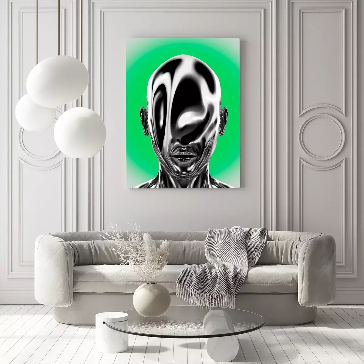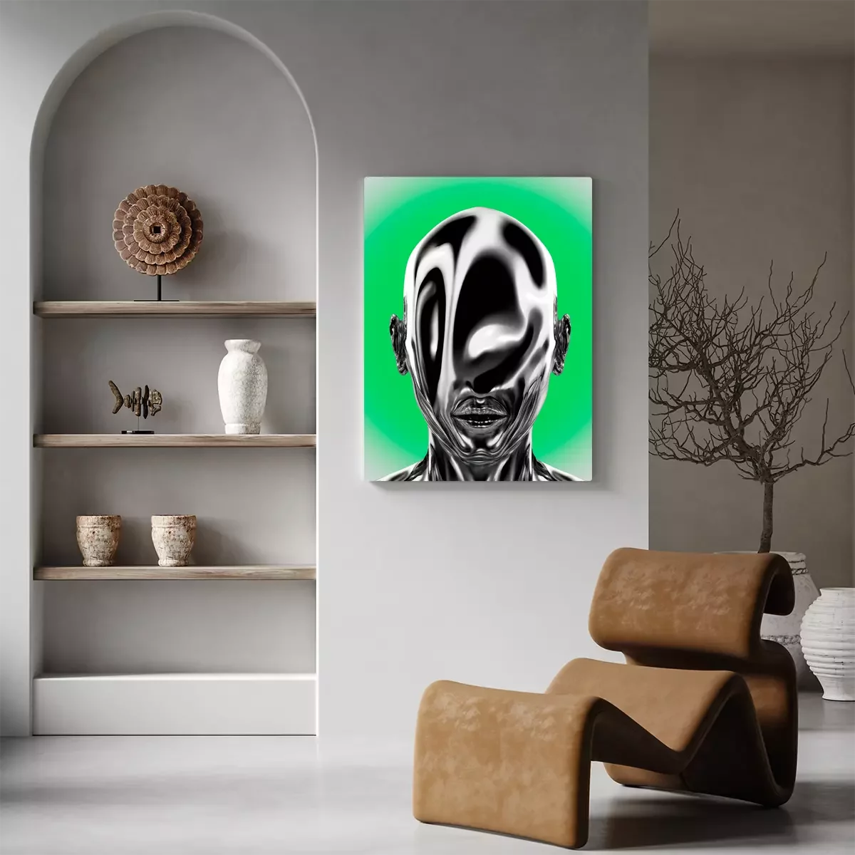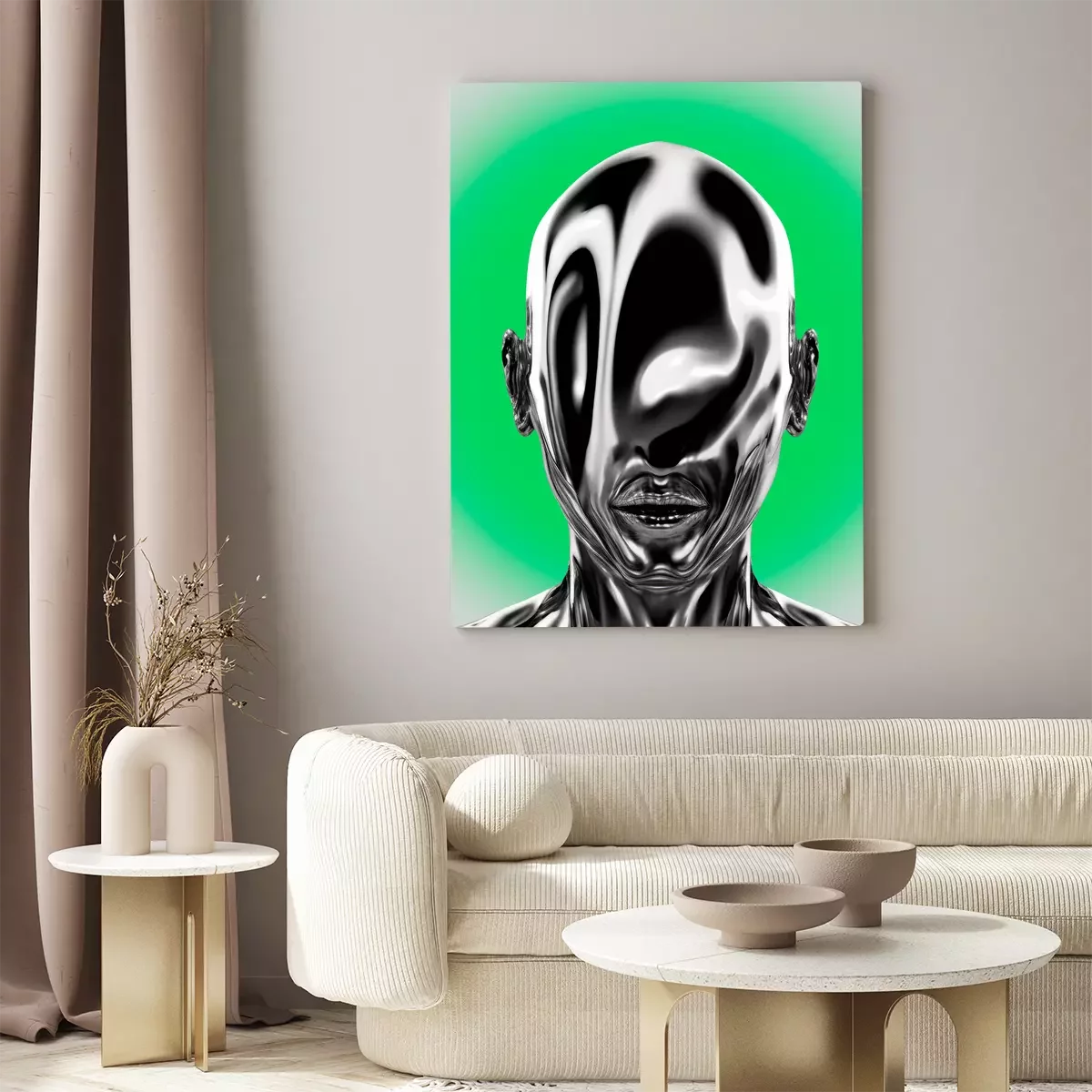 Metallischer kopf mit einer flüssigkeitsoberfläche