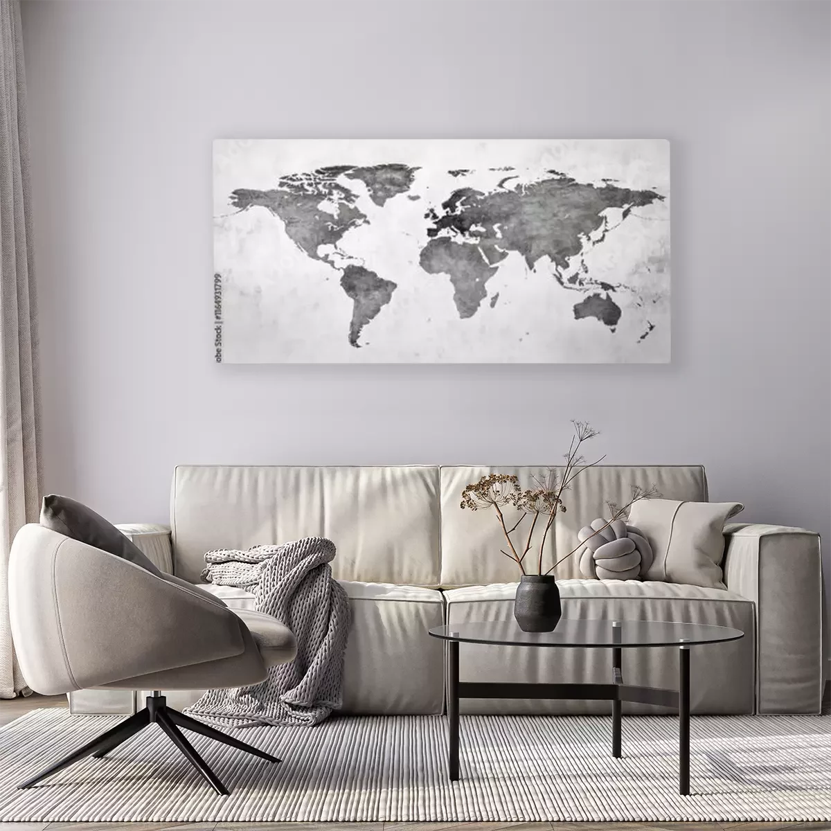 Minimalistische weltkarte in grautönen