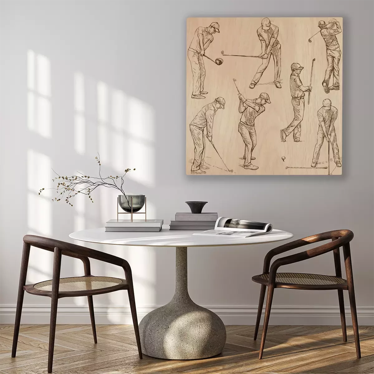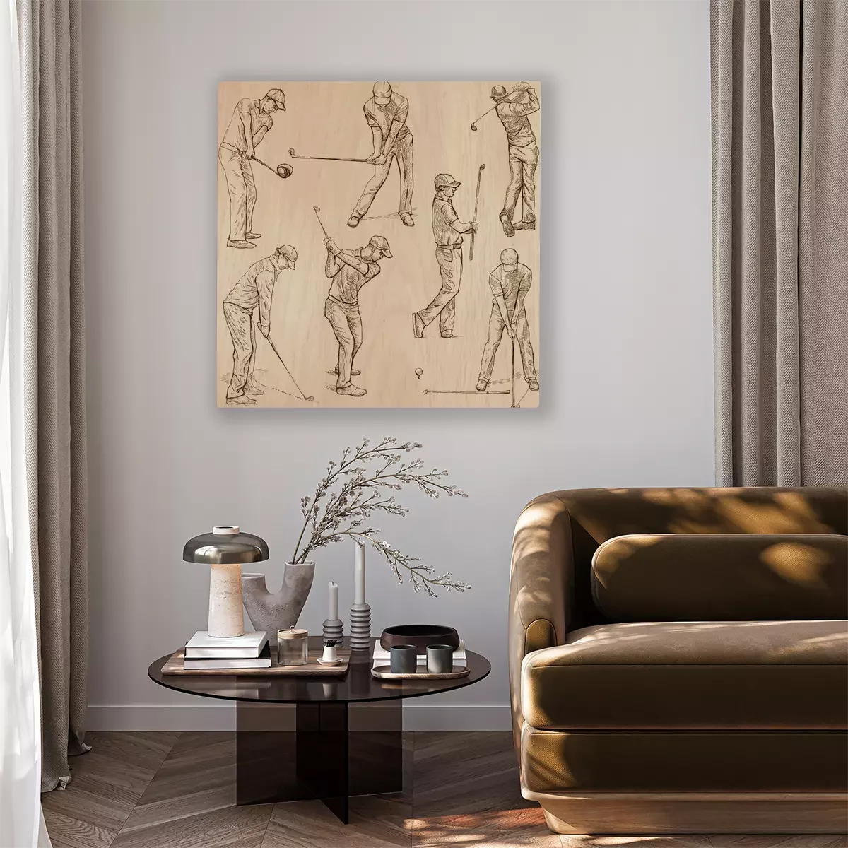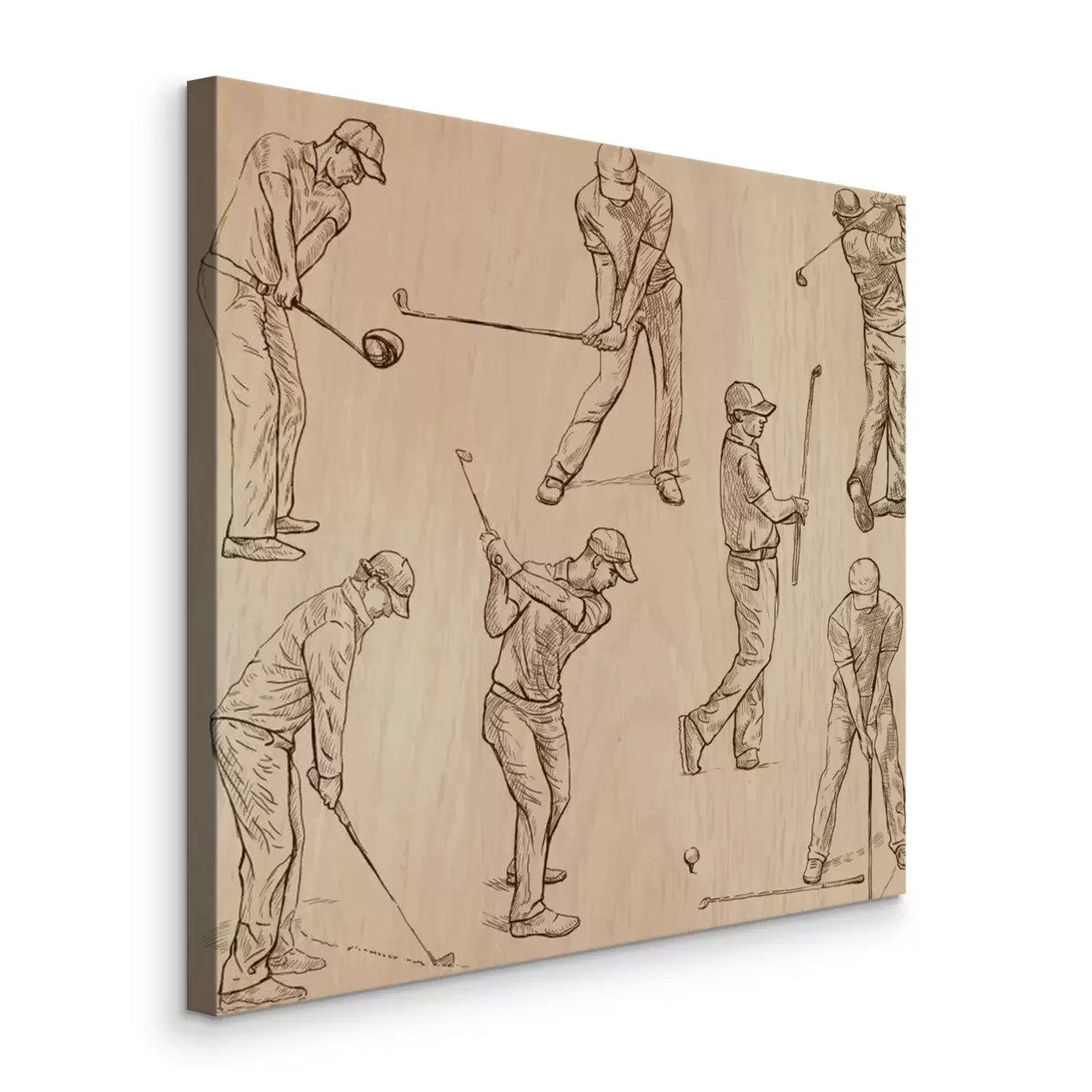 Auf Holz gezeichnete professionelle Golspielerinnen