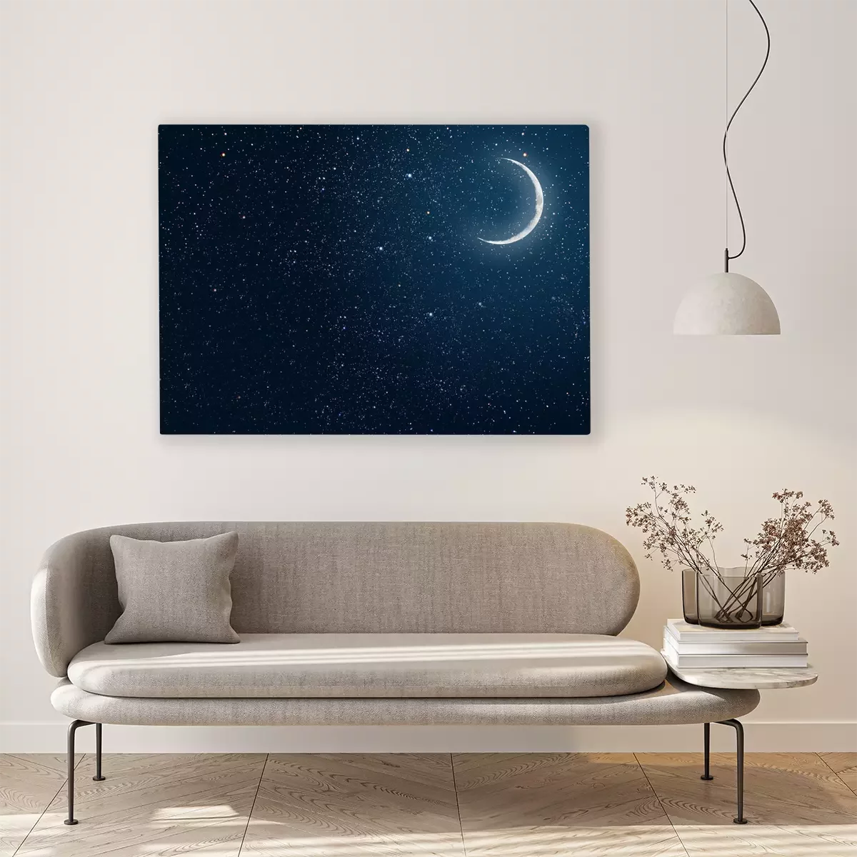 Bild Mond und Sterne am dunklen Himmel