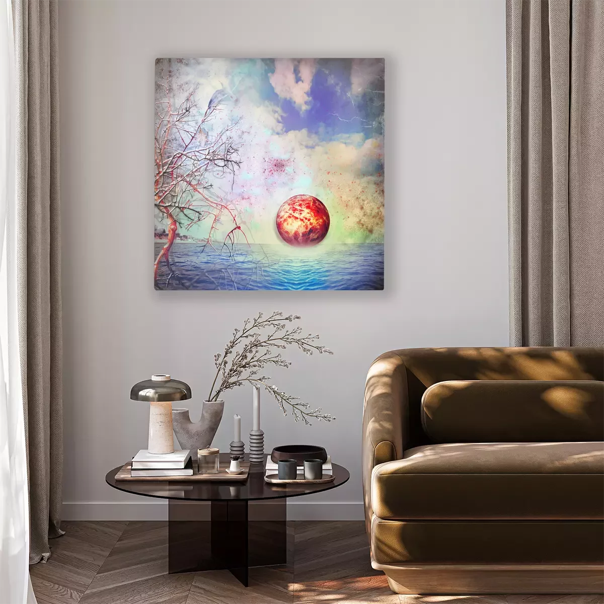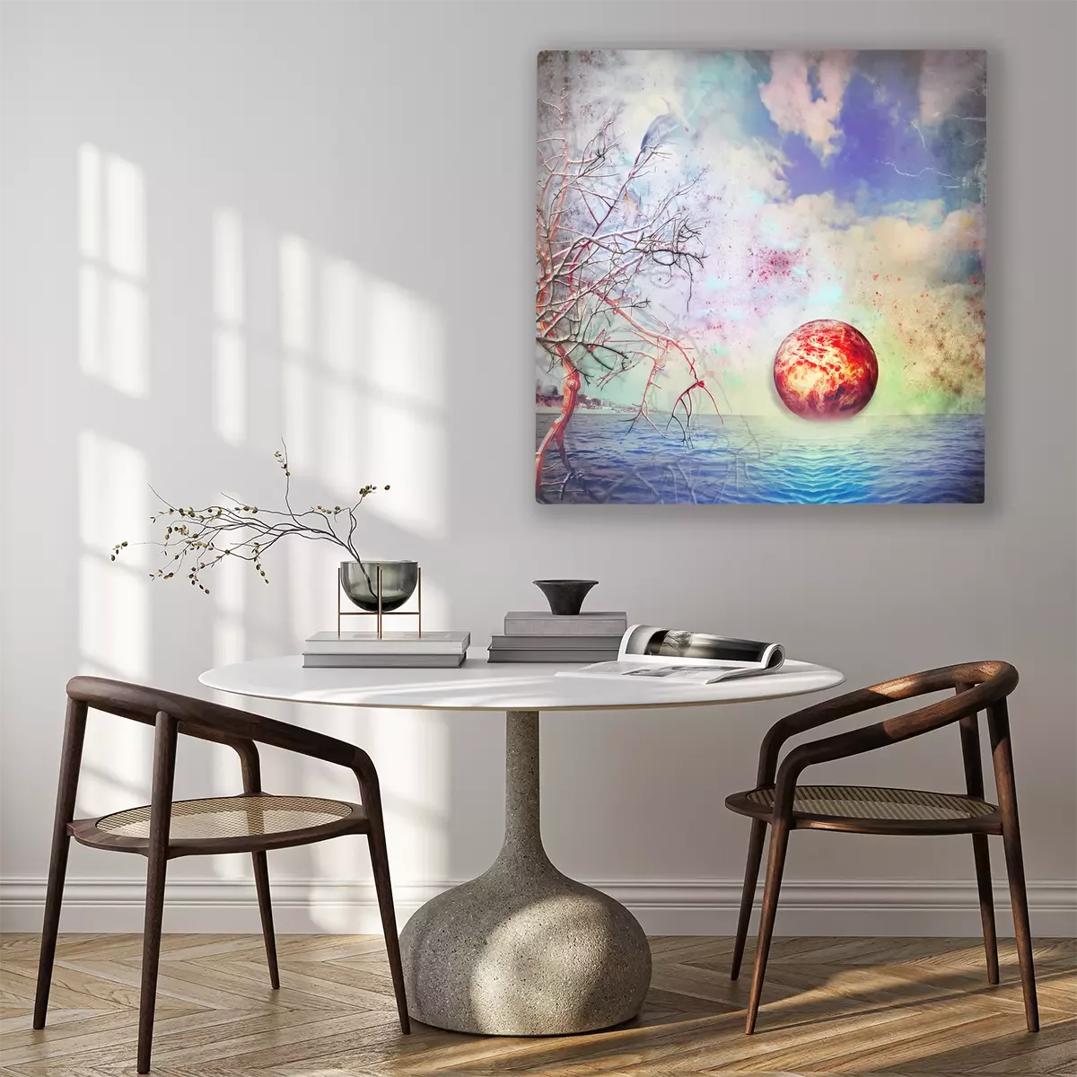Das Motiv wird auf eine qualitativ hochwertige Leinwand gedruckt, die auf einen Blendrahmen gezogen wird. Da der Aufdruck die Seitenkanten bedeckt, muss das Bild nicht zusätzlich eingerahmt werden. Wir empfehlen außerdem Kompositionen aus mehreren Bildern, die ein harmonisches Ganzes bilden.