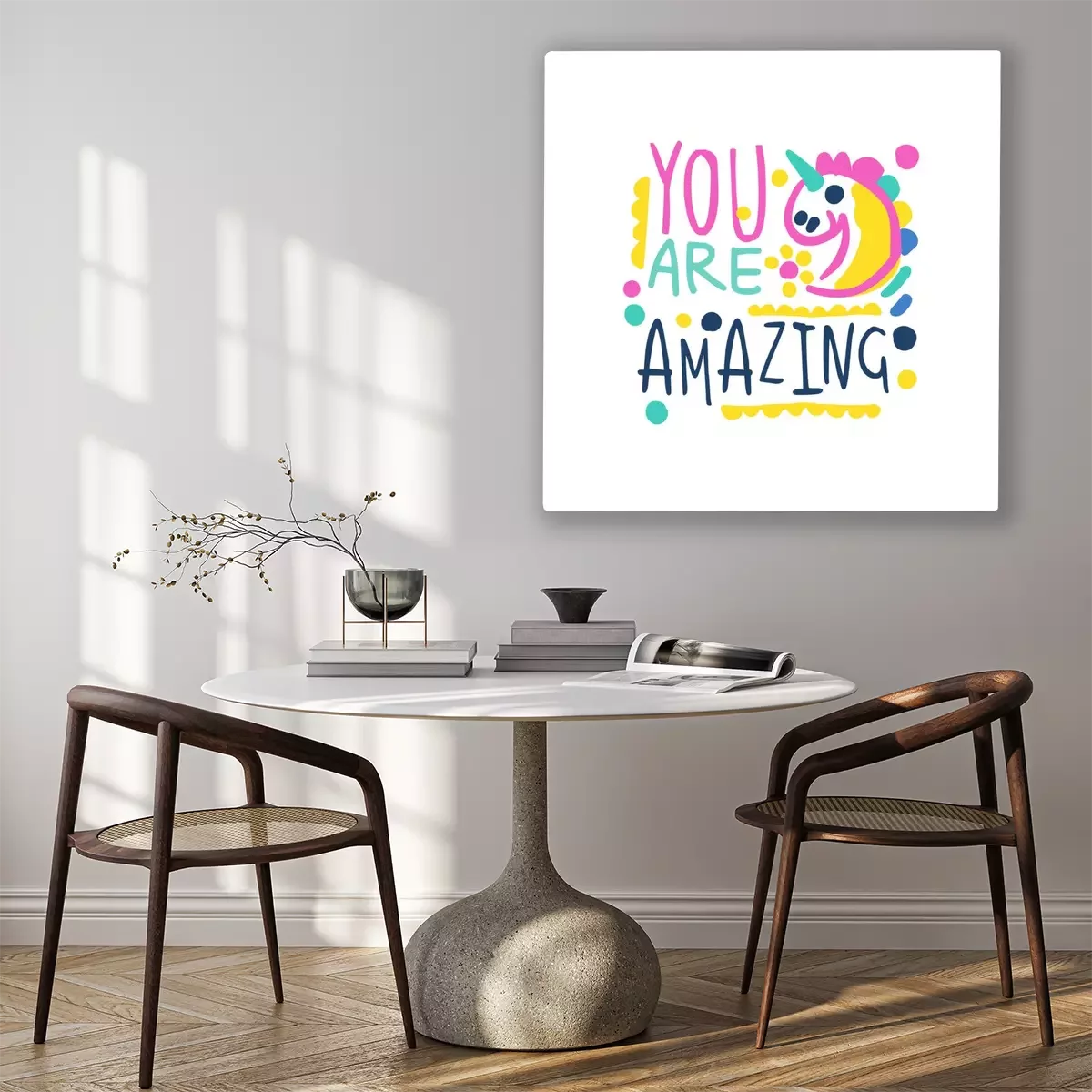 • Montage: Das Bild kann sofort an die Wand gehängt werden. Haken und Nägel werden für jedes Bild mitgeliefert.