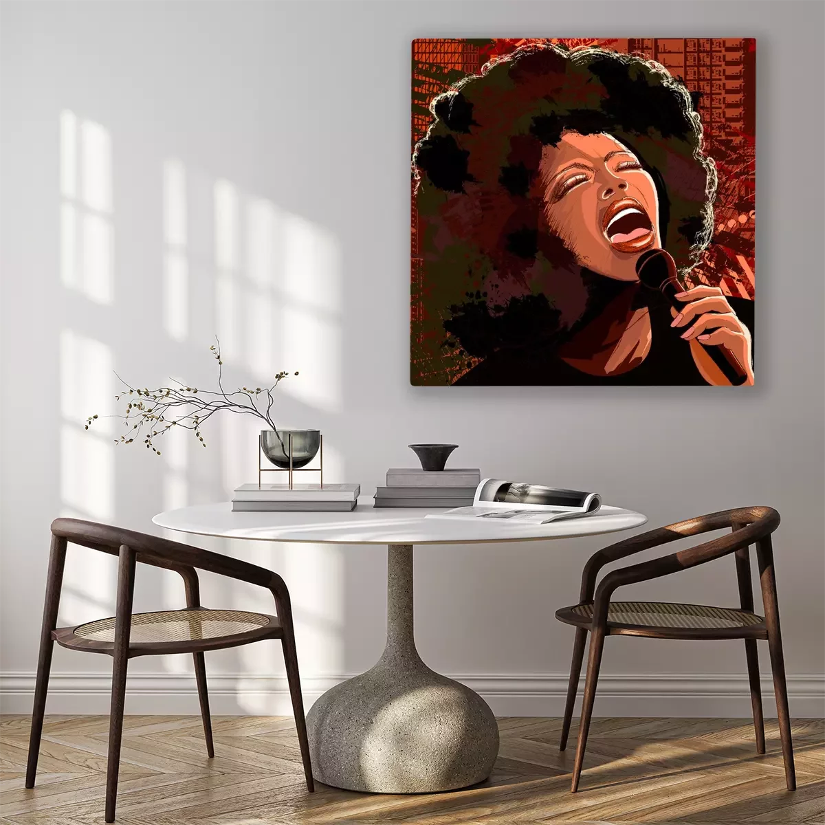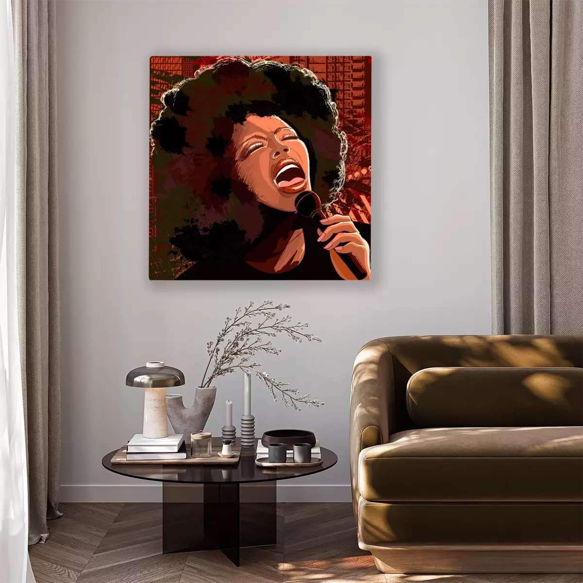 Abstraktes Porträt einer Sängerin mit Mikrofon