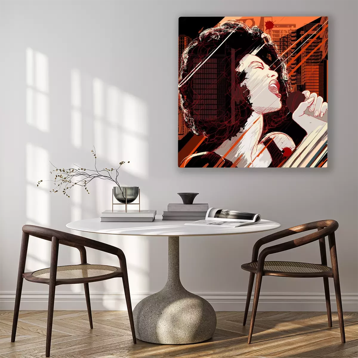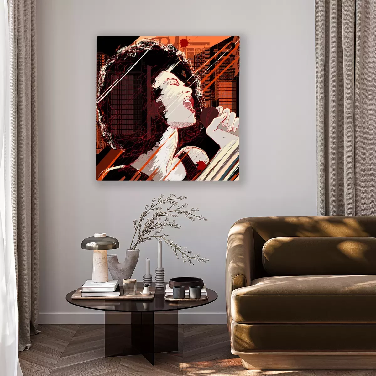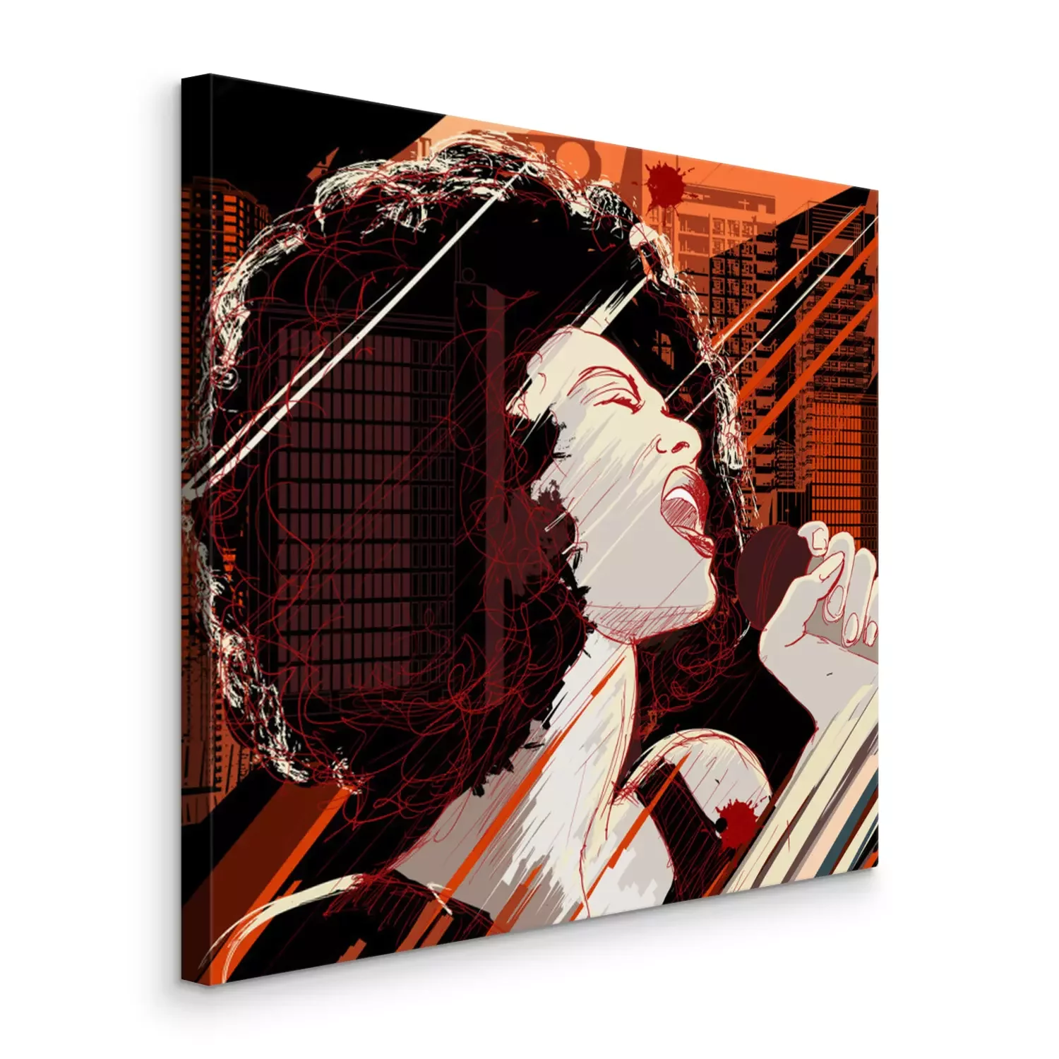 Abstraktes Porträt einer Sängerin mit Mikrofon