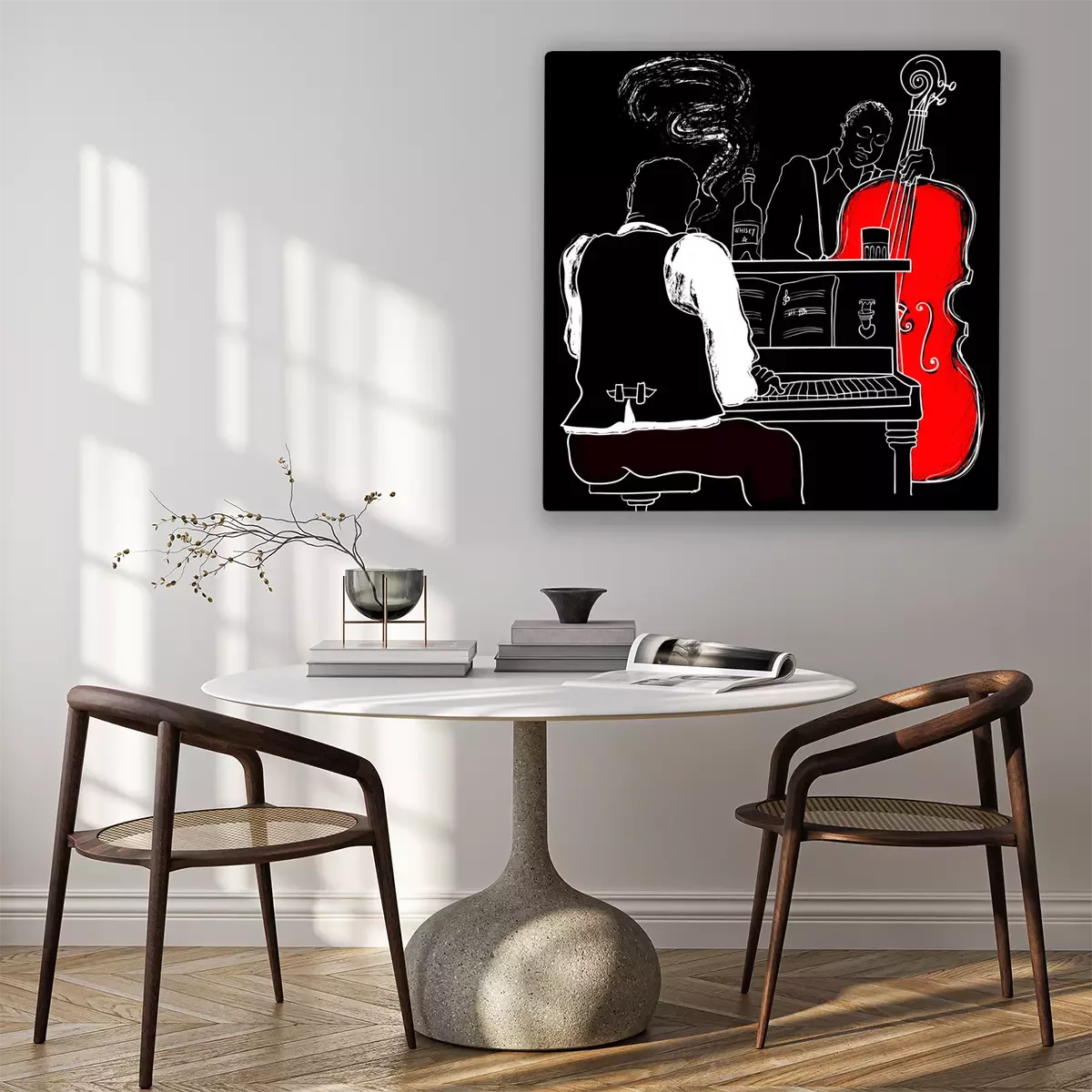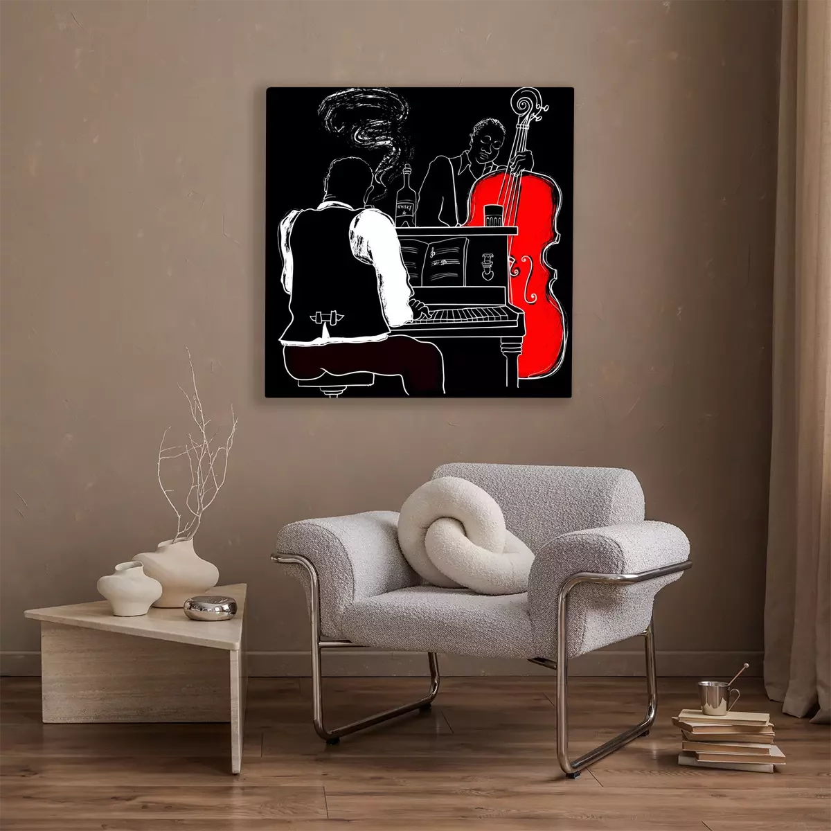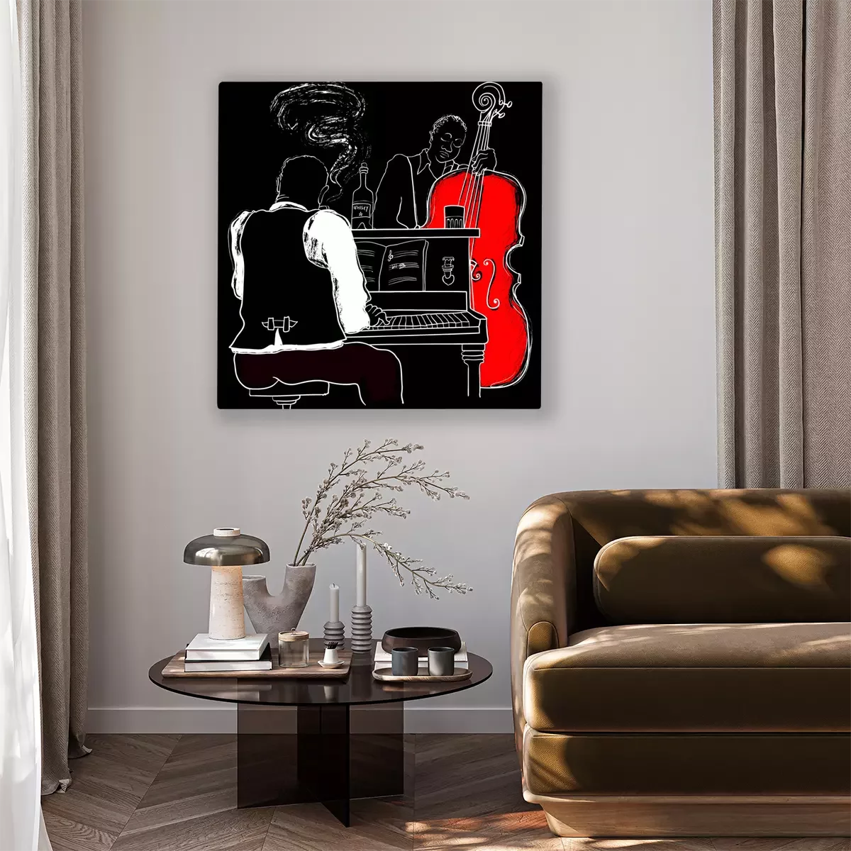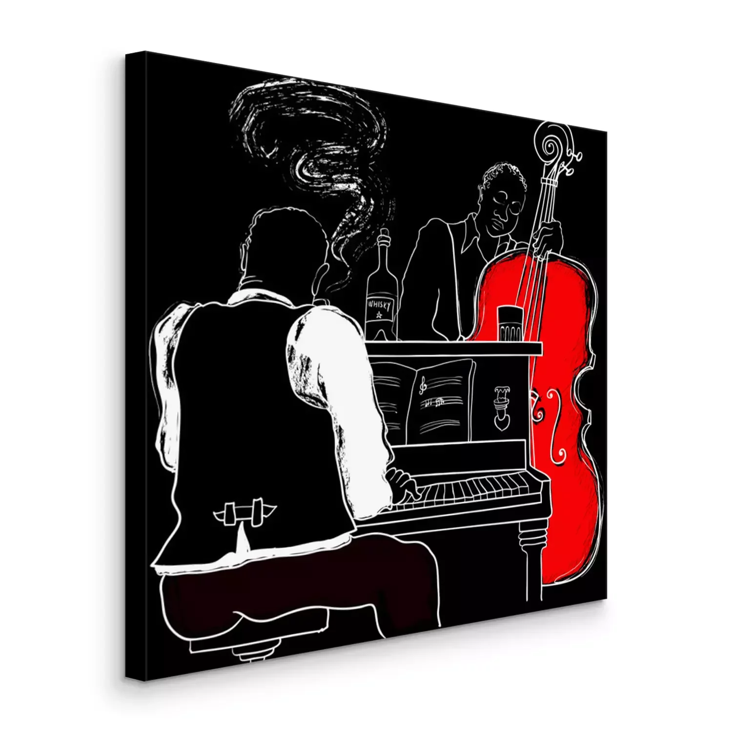 Zwei Jazzmusiker vor dem Hintergrund der Wolkenkratzer