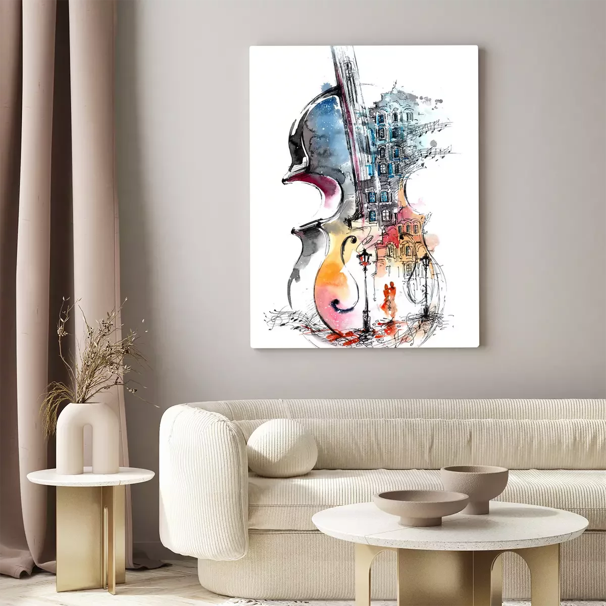 Aquarell-Illustration einer Geige spielenden Frau