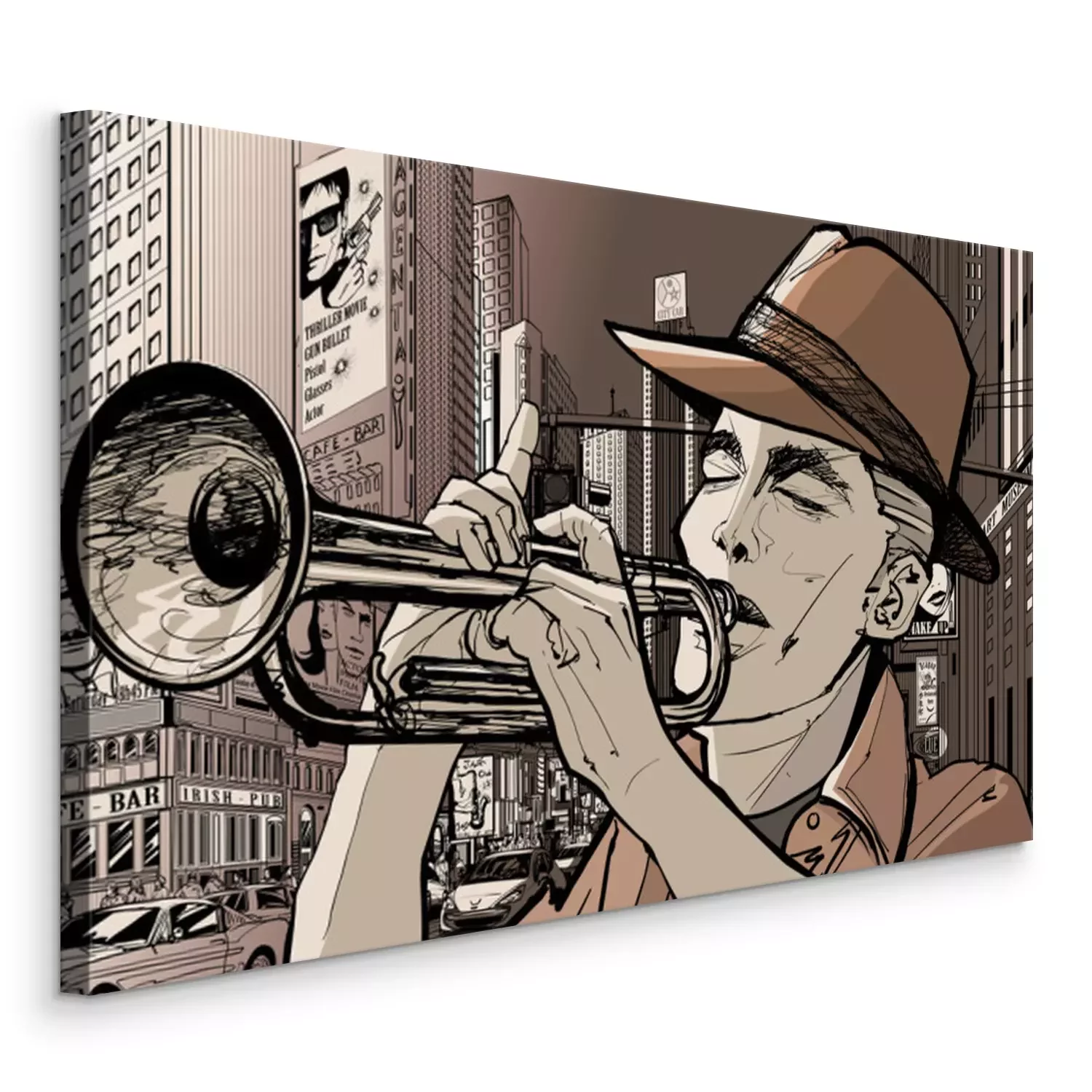 Zwei Jazzmusiker vor dem Hintergrund der Wolkenkratzer