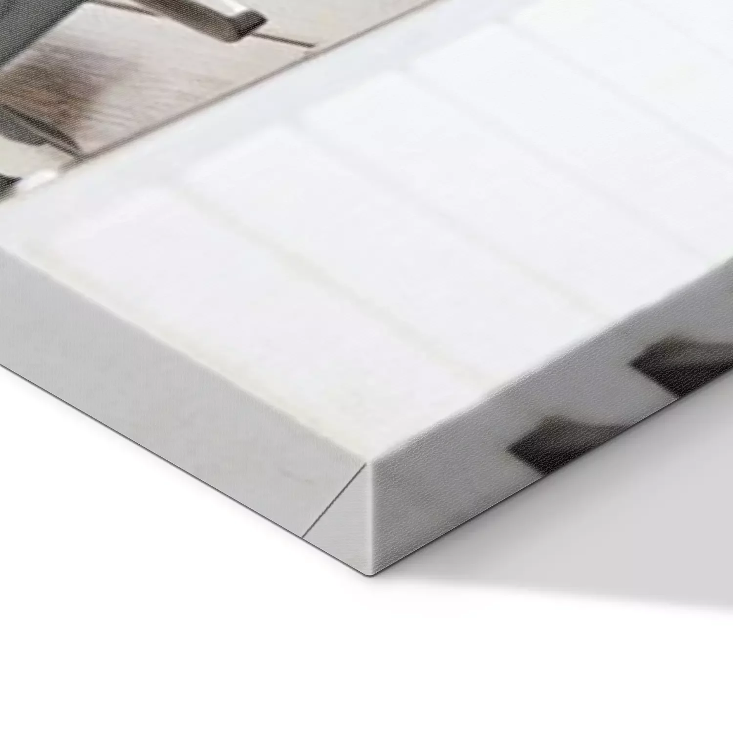 Das Motiv wird auf eine qualitativ hochwertige Leinwand gedruckt, die auf einen Blendrahmen gezogen wird. Da der Aufdruck die Seitenkanten bedeckt, muss das Bild nicht zusätzlich eingerahmt werden. Wir empfehlen außerdem Kompositionen aus mehreren Bildern, die ein harmonisches Ganzes bilden.