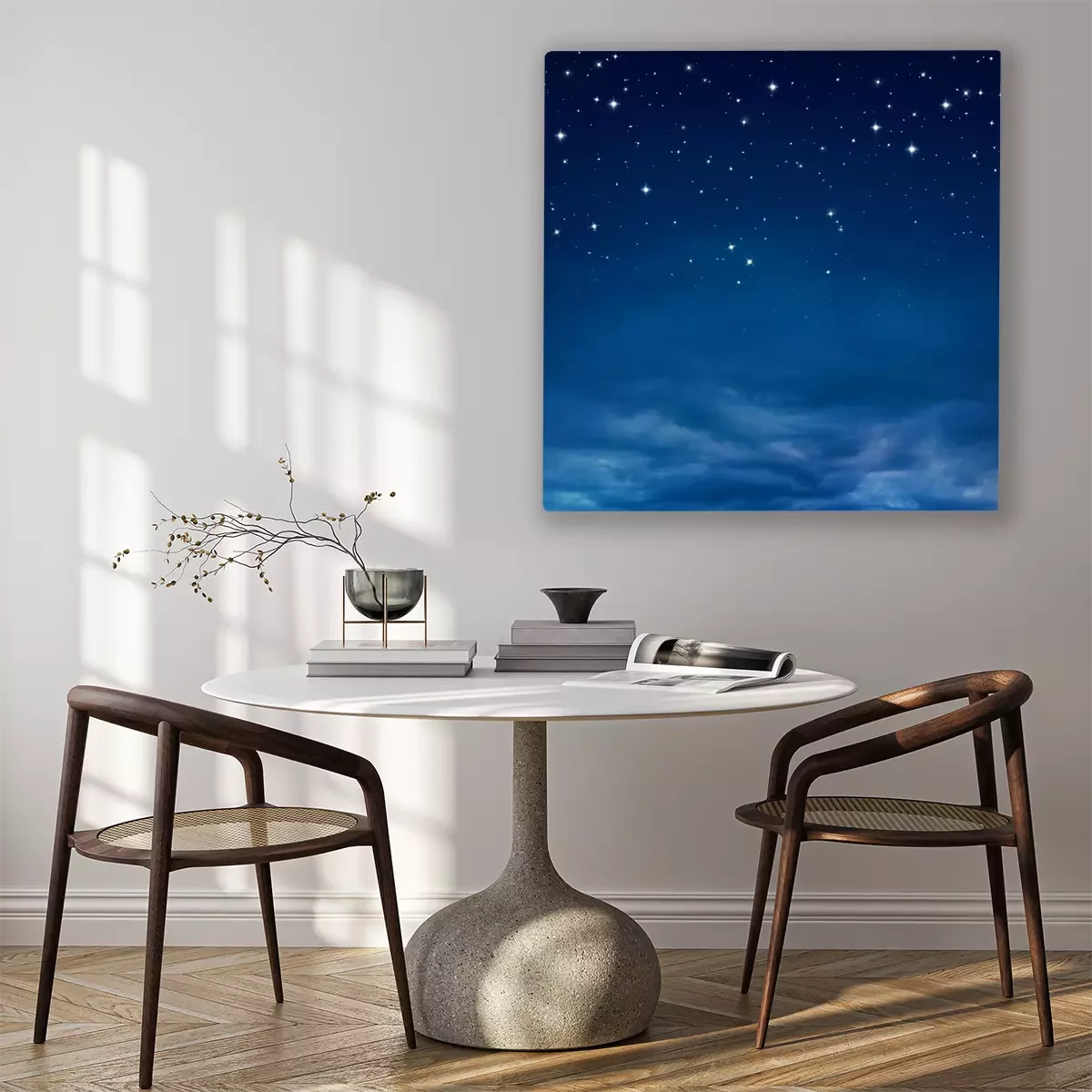 Das Motiv wird auf eine qualitativ hochwertige Leinwand gedruckt, die auf einen Blendrahmen gezogen wird. Da der Aufdruck die Seitenkanten bedeckt, muss das Bild nicht zusätzlich eingerahmt werden. Wir empfehlen außerdem Kompositionen aus mehreren Bildern, die ein harmonisches Ganzes bilden.