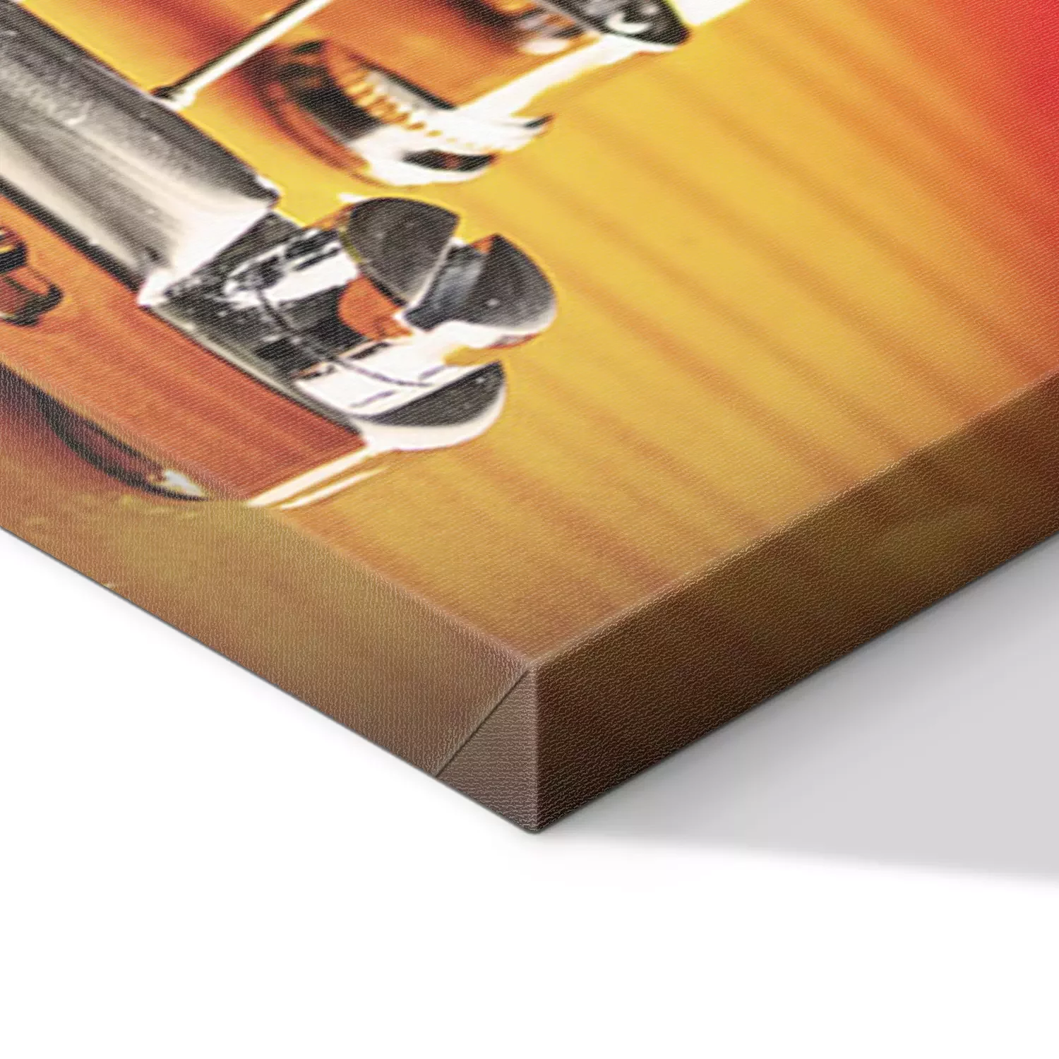 Das Motiv wird auf eine qualitativ hochwertige Leinwand gedruckt, die auf einen Blendrahmen gezogen wird. Da der Aufdruck die Seitenkanten bedeckt, muss das Bild nicht zusätzlich eingerahmt werden. Wir empfehlen außerdem Kompositionen aus mehreren Bildern, die ein harmonisches Ganzes bilden.