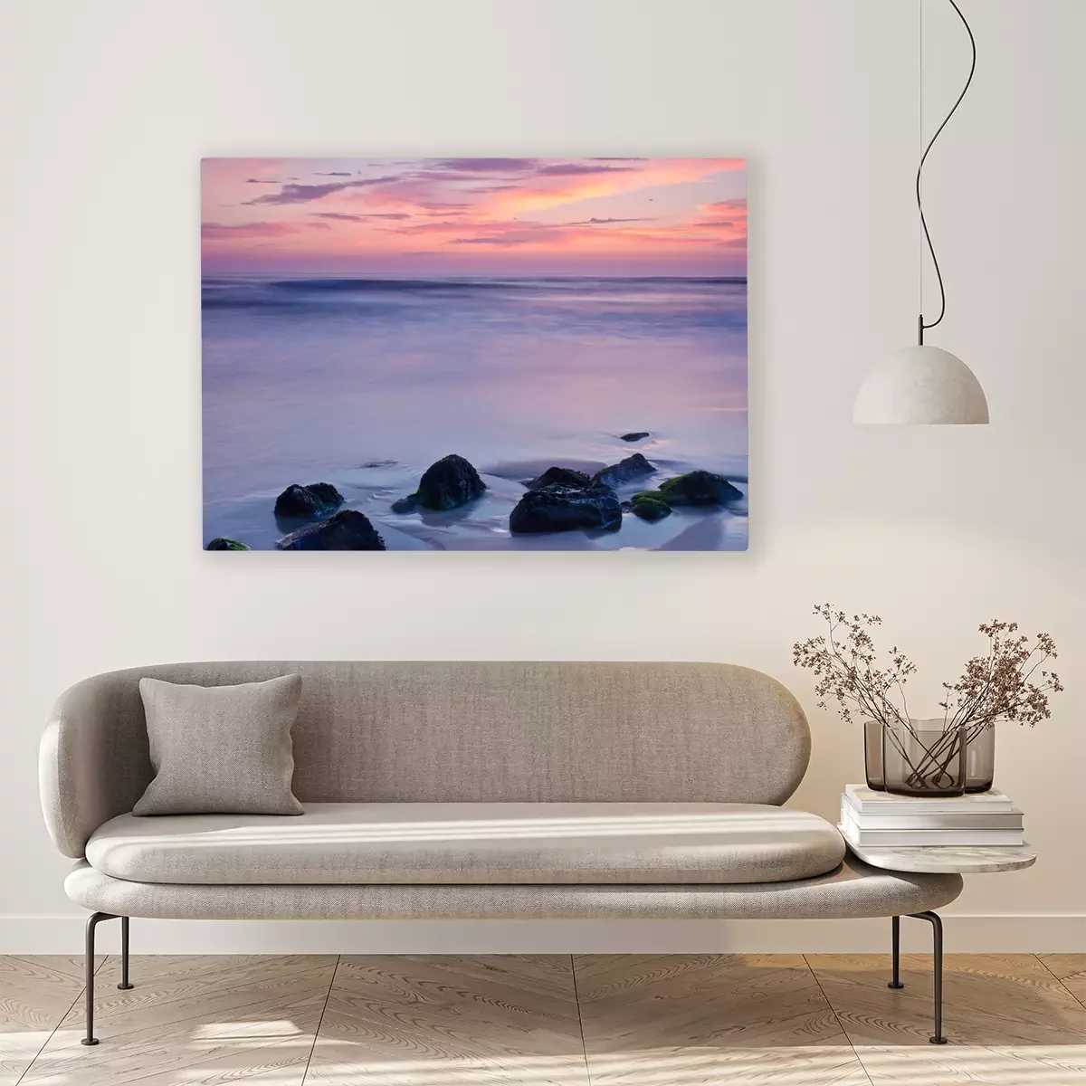Das Motiv wird auf eine qualitativ hochwertige Leinwand gedruckt, die auf einen Blendrahmen gezogen wird. Da der Aufdruck die Seitenkanten bedeckt, muss das Bild nicht zusätzlich eingerahmt werden. Wir empfehlen außerdem Kompositionen aus mehreren Bildern, die ein harmonisches Ganzes bilden.