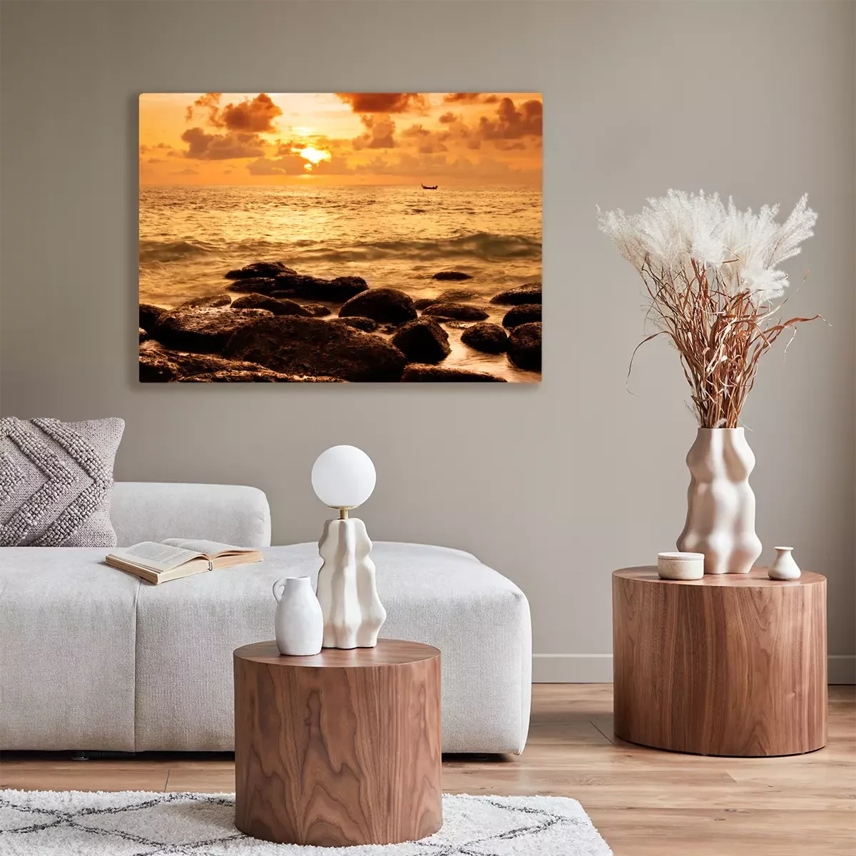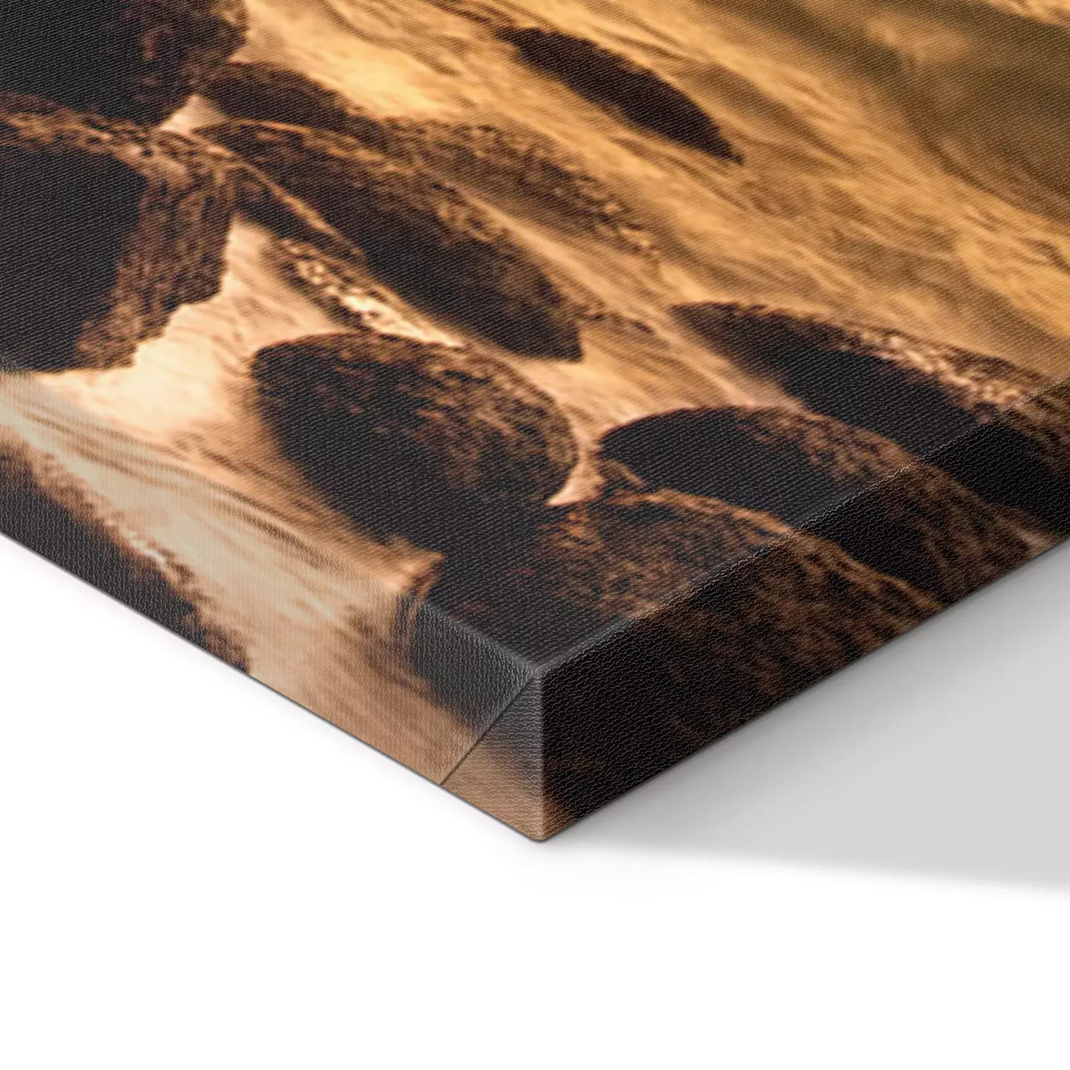 Das Motiv wird auf eine qualitativ hochwertige Leinwand gedruckt, die auf einen Blendrahmen gezogen wird. Da der Aufdruck die Seitenkanten bedeckt, muss das Bild nicht zusätzlich eingerahmt werden. Wir empfehlen außerdem Kompositionen aus mehreren Bildern, die ein harmonisches Ganzes bilden.