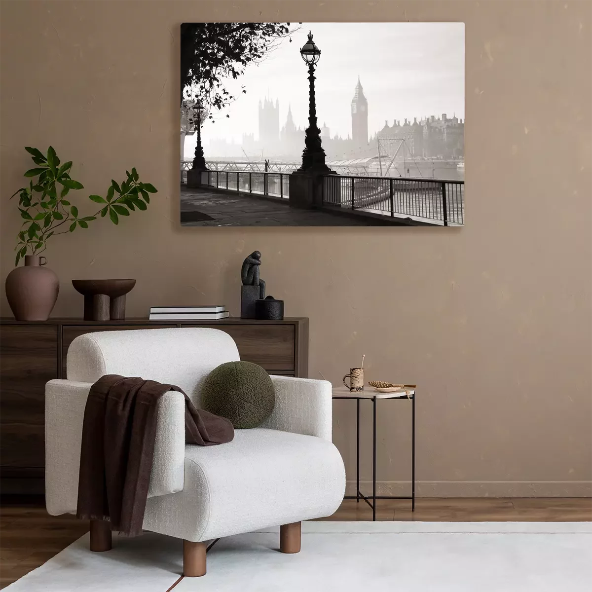 Schwarz-weiße Ansicht von London im Nebel
