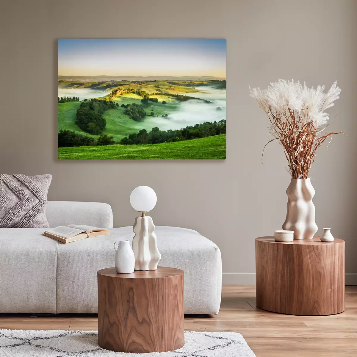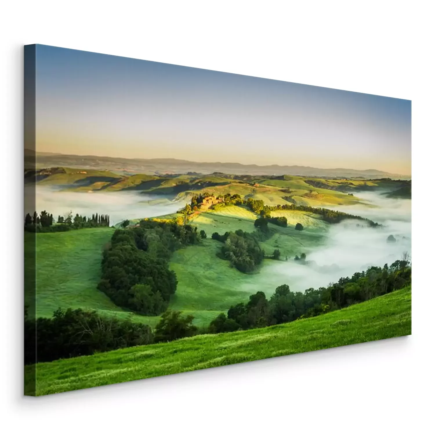 Grüne Felder und Wiesen bei Sonnenuntergang in der Toskana