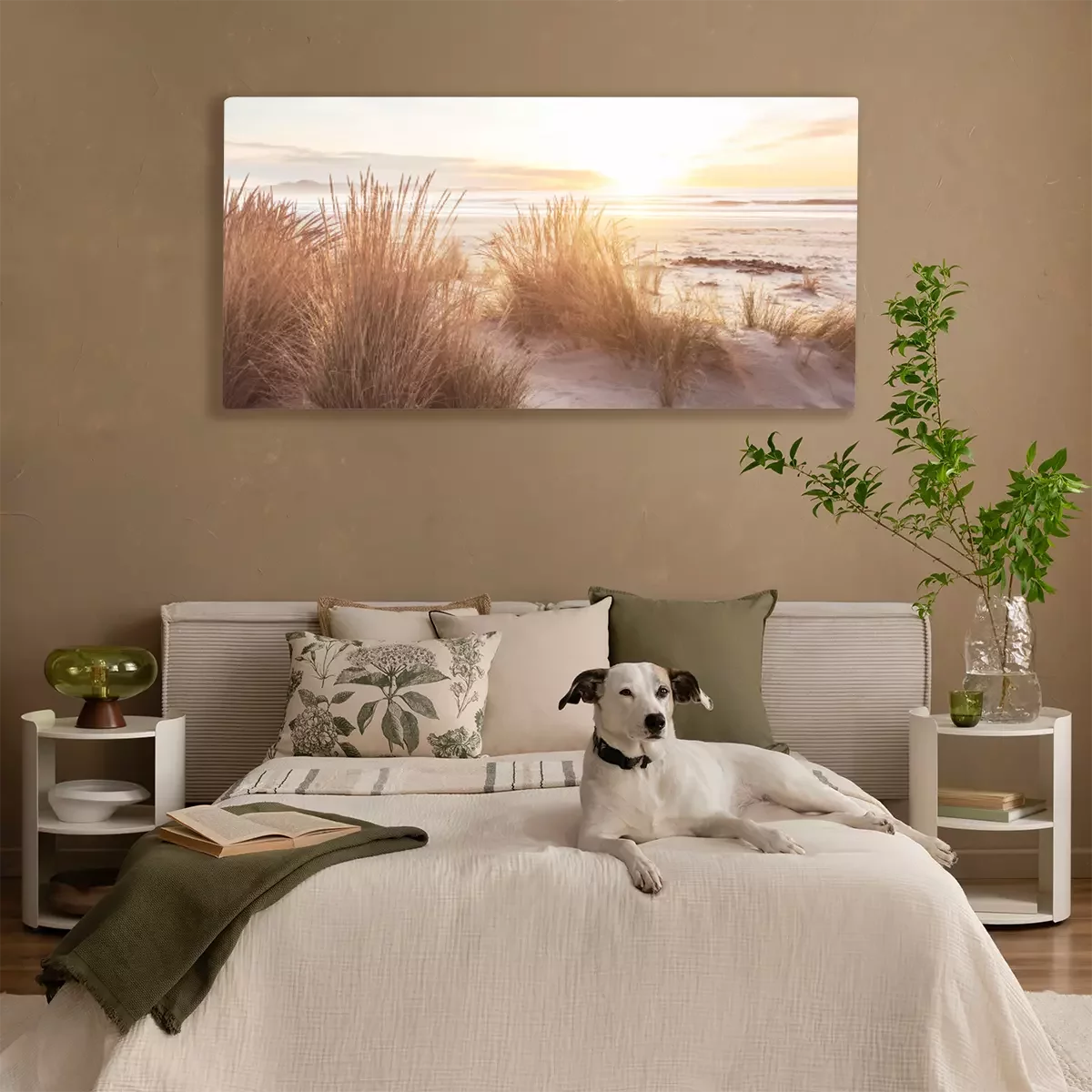 Das Motiv wird auf eine qualitativ hochwertige Leinwand gedruckt, die auf einen Blendrahmen gezogen wird. Da der Aufdruck die Seitenkanten bedeckt, muss das Bild nicht zusätzlich eingerahmt werden. Wir empfehlen außerdem Kompositionen aus mehreren Bildern, die ein harmonisches Ganzes bilden.