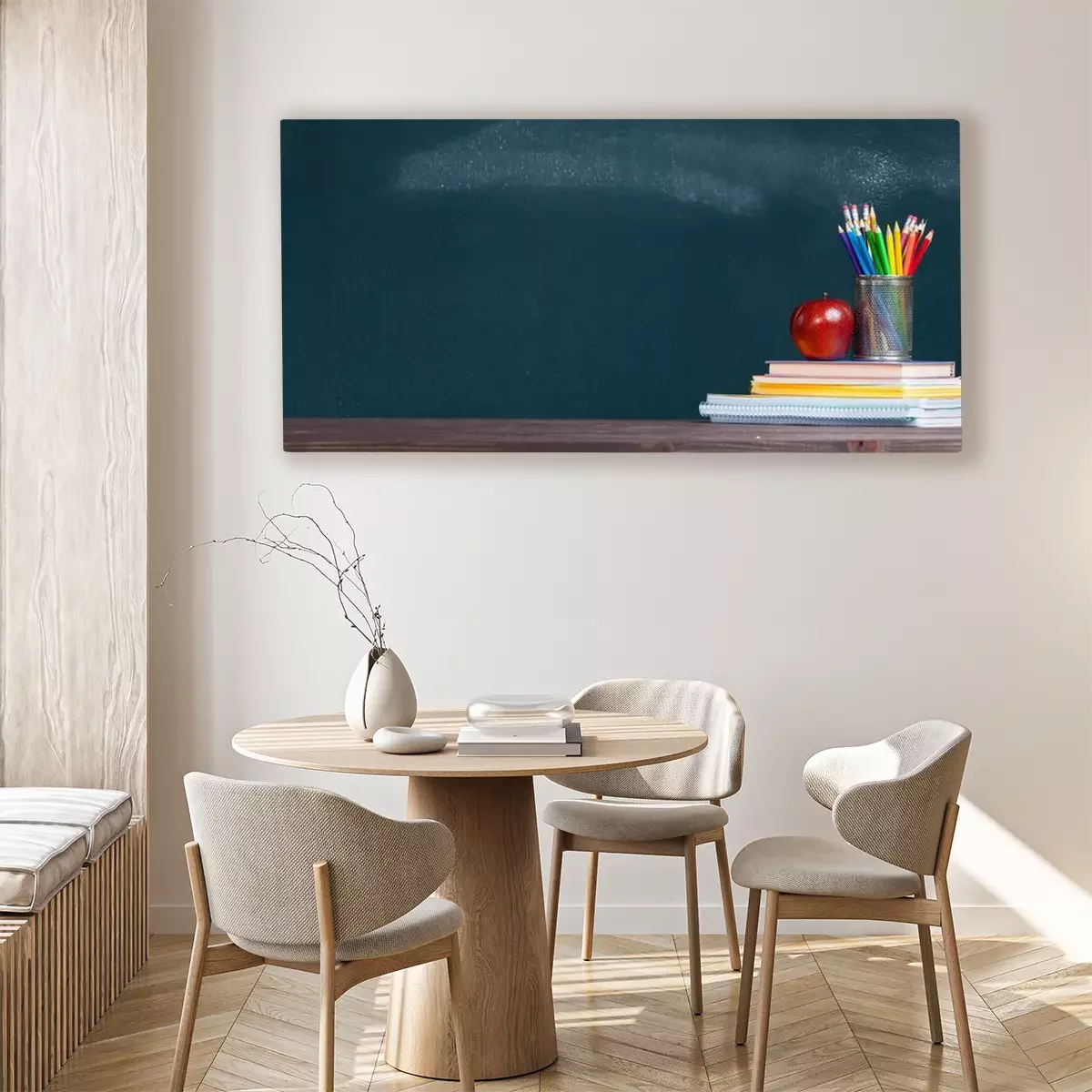 Bild: Notizbücher und Apfel auf einem Schreibtisch