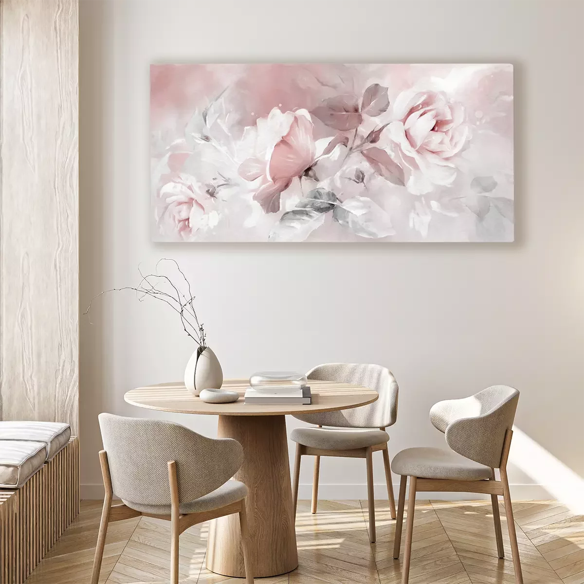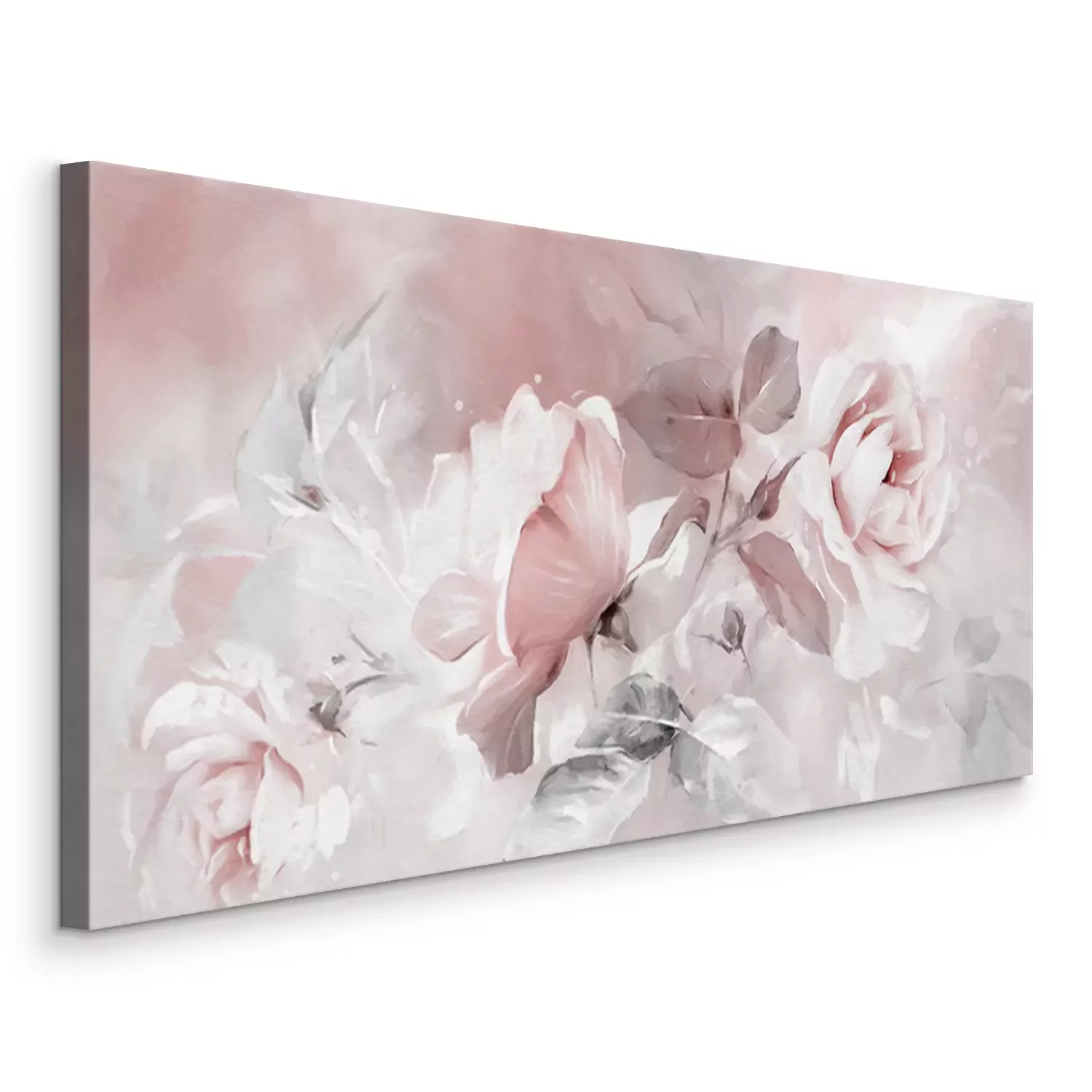 Bild Oil painting with flower rose, leaves. Botanic print background on canvas -  triptych In Interior, art.
