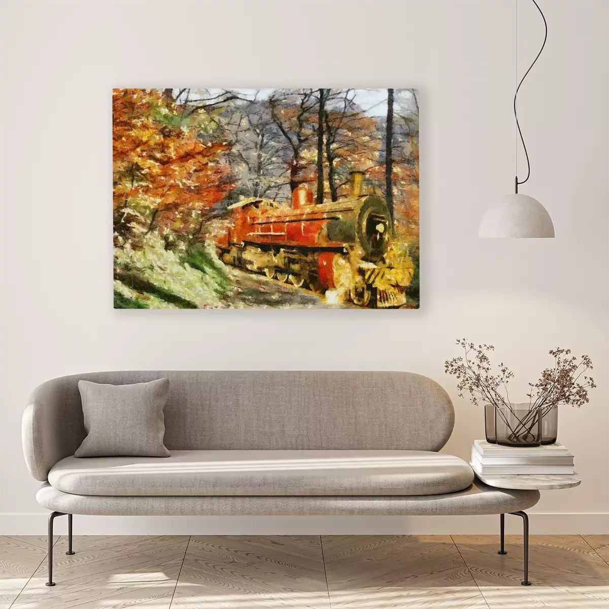 Bild Orange Zug durch den Wald (Ölgemälde)