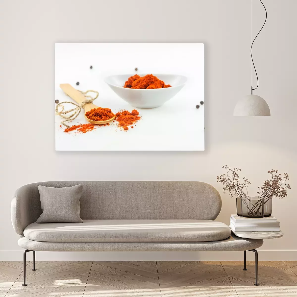 Bild Orangefarbenes Gewürz in der weißen Schale