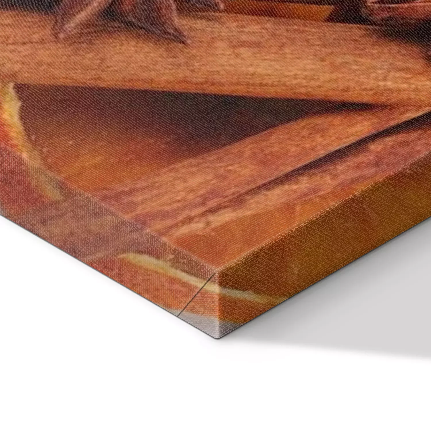 Das Motiv wird auf eine qualitativ hochwertige Leinwand gedruckt, die auf einen Blendrahmen gezogen wird. Da der Aufdruck die Seitenkanten bedeckt, muss das Bild nicht zusätzlich eingerahmt werden. Wir empfehlen außerdem Kompositionen aus mehreren Bildern, die ein harmonisches Ganzes bilden.