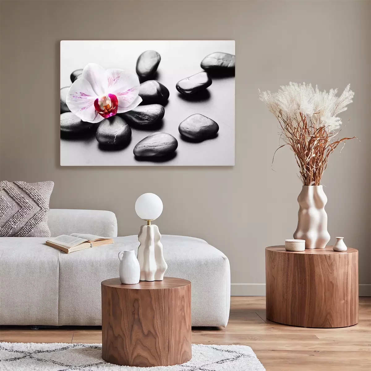Orchid Blume auf Zen-SteineProblemlose Lieferung durch vertrauenswürdige Spediteure