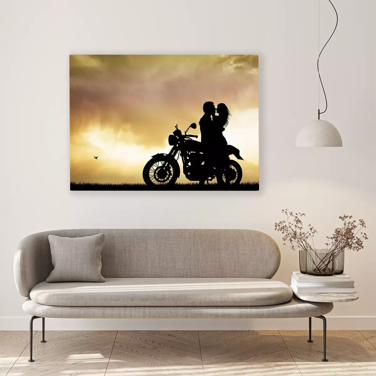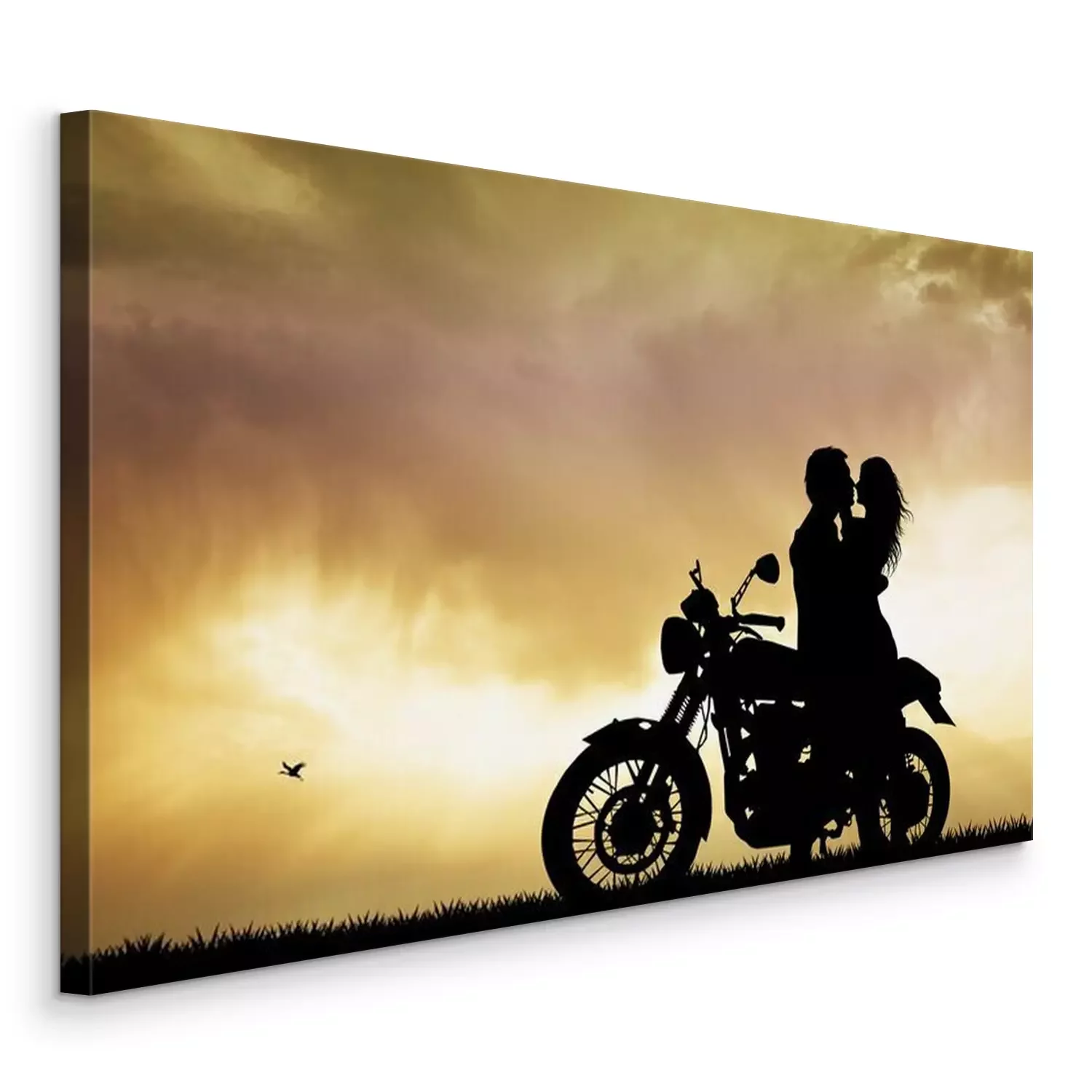 Bild: Paar auf einem Motorrad bei Sonnenuntergang
