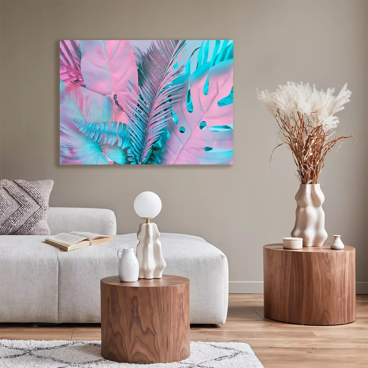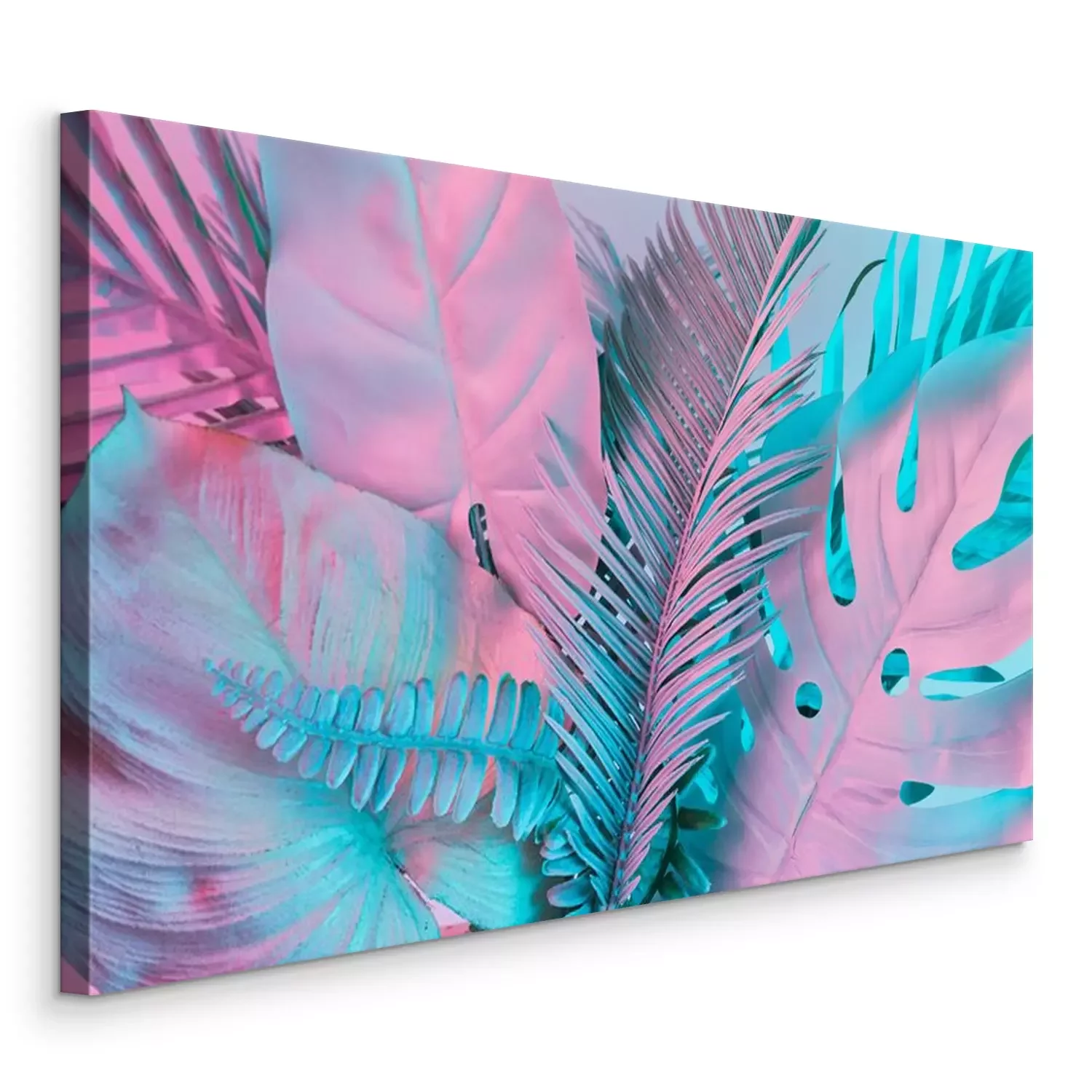 Bunte Palmenblätter auf einem farbenfrohen Hintergrund