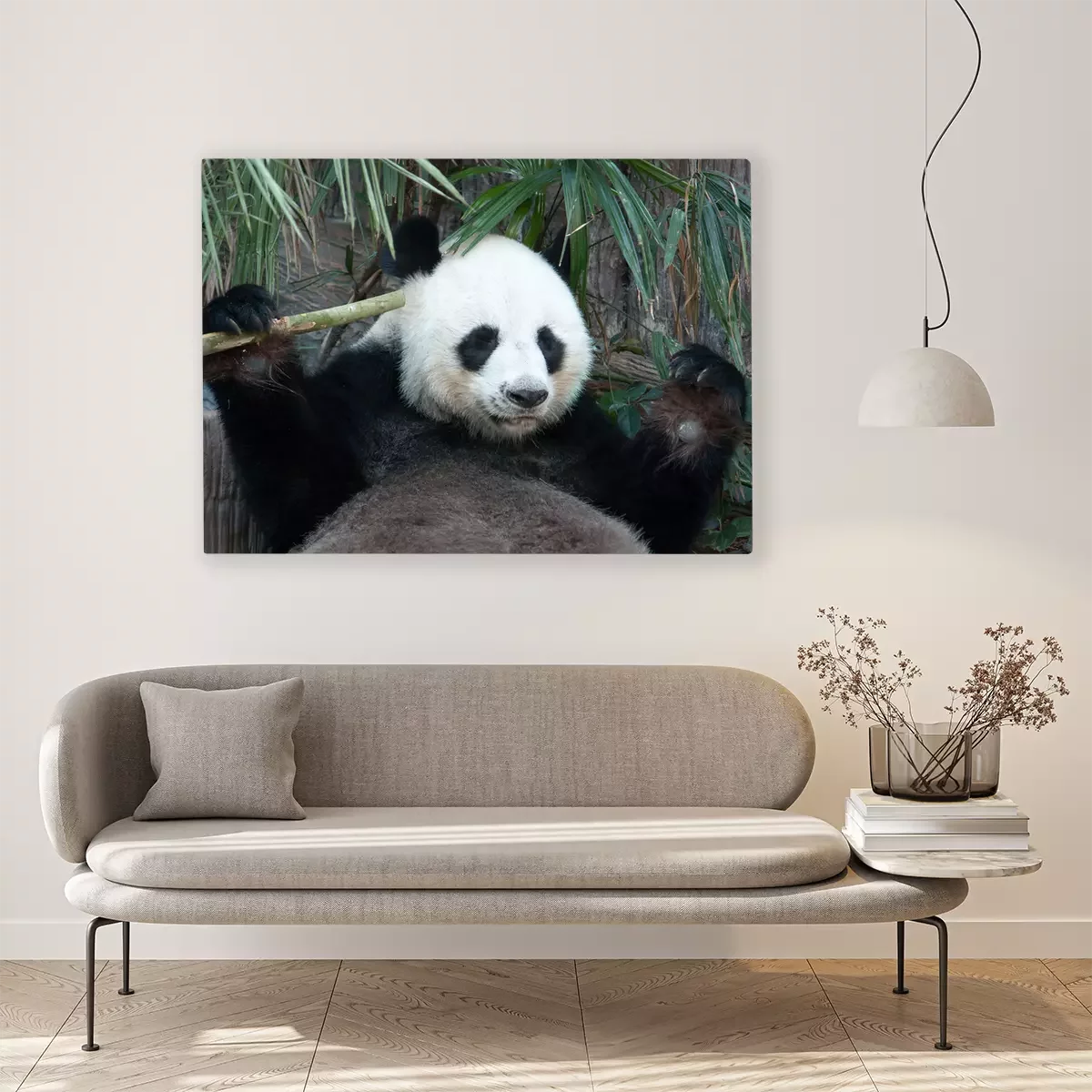 Bild: Pandabär und Bambusblätter