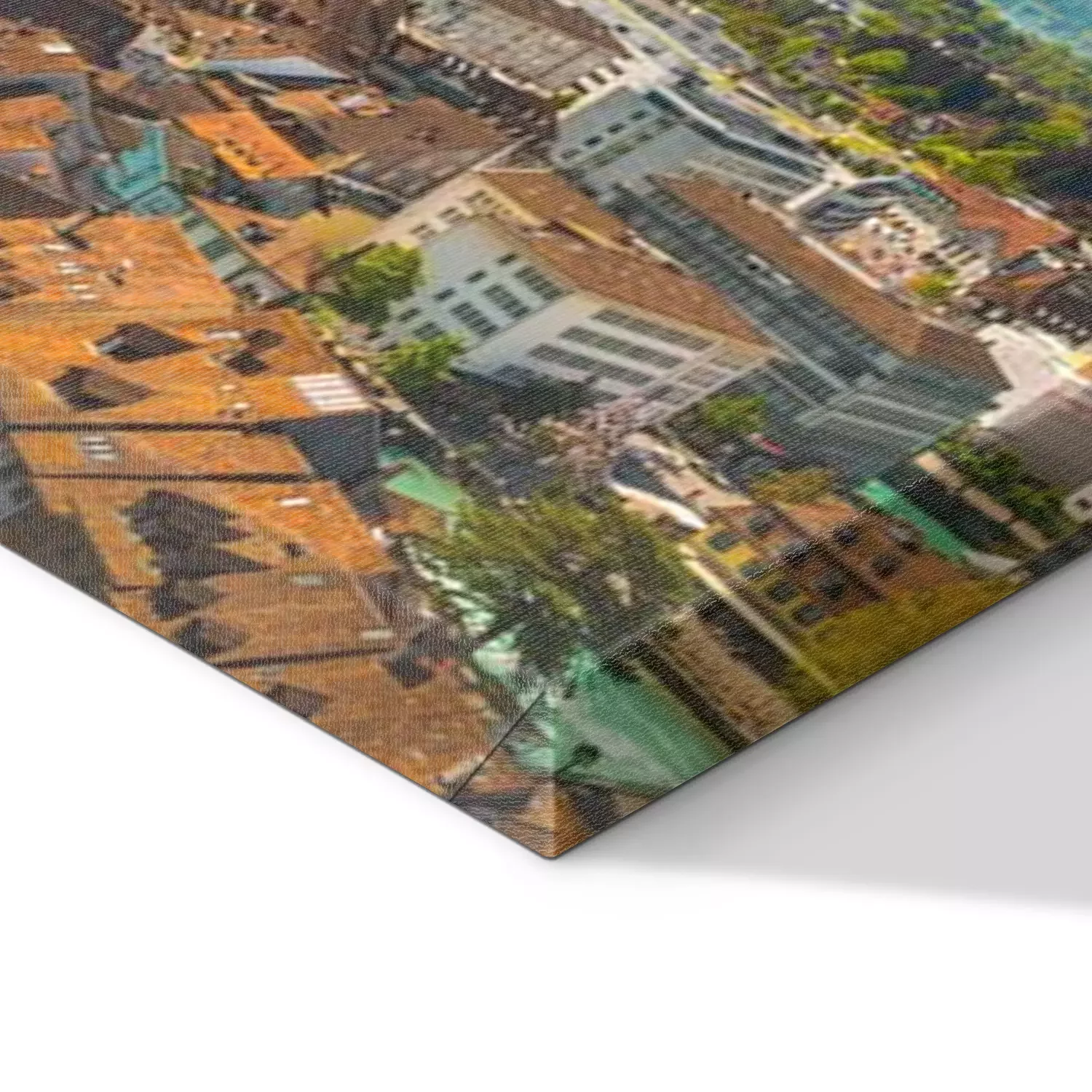 Das Motiv wird auf eine qualitativ hochwertige Leinwand gedruckt, die auf einen Blendrahmen gezogen wird. Da der Aufdruck die Seitenkanten bedeckt, muss das Bild nicht zusätzlich eingerahmt werden. Wir empfehlen außerdem Kompositionen aus mehreren Bildern, die ein harmonisches Ganzes bilden.