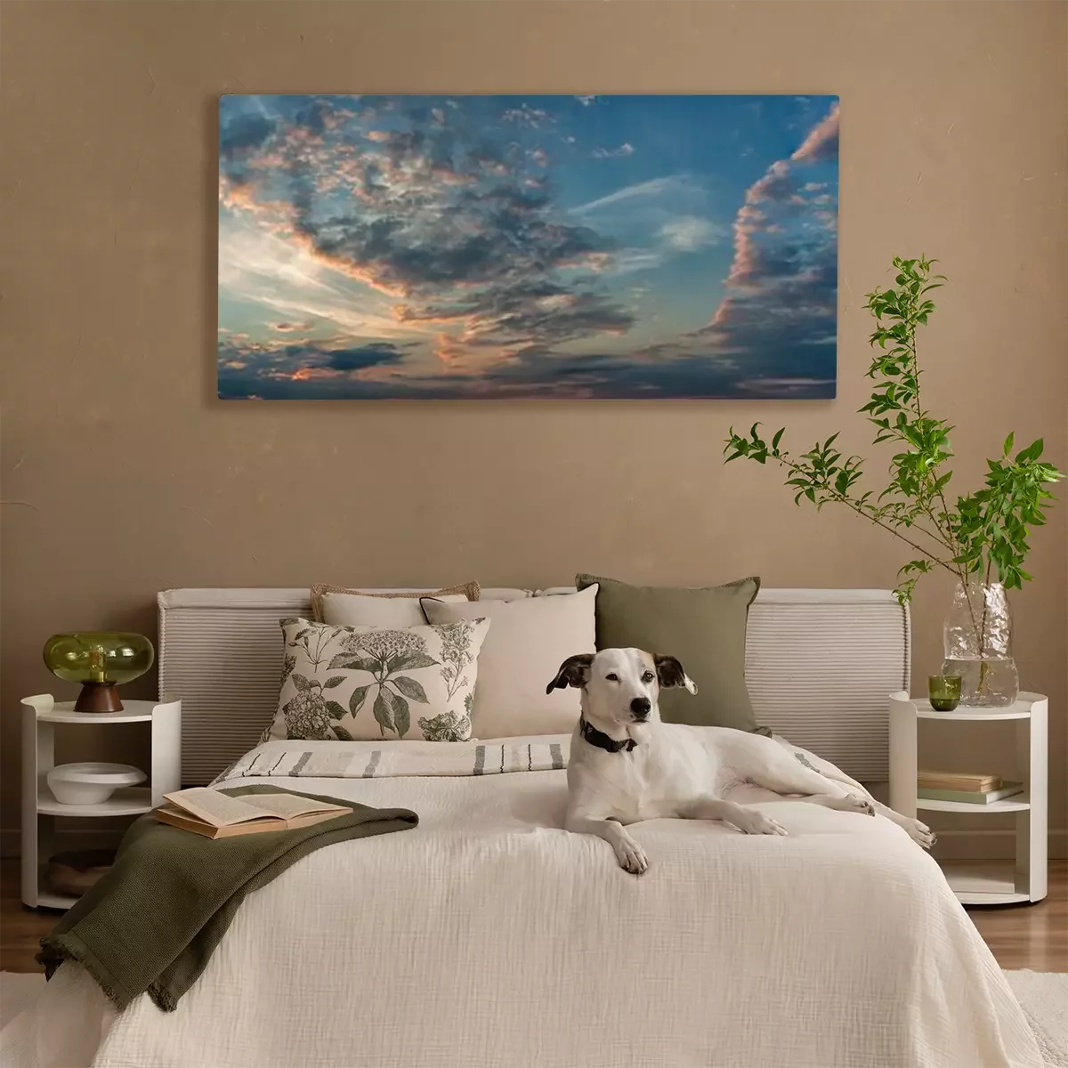 Das Motiv wird auf eine qualitativ hochwertige Leinwand gedruckt, die auf einen Blendrahmen gezogen wird. Da der Aufdruck die Seitenkanten bedeckt, muss das Bild nicht zusätzlich eingerahmt werden. Wir empfehlen außerdem Kompositionen aus mehreren Bildern, die ein harmonisches Ganzes bilden.