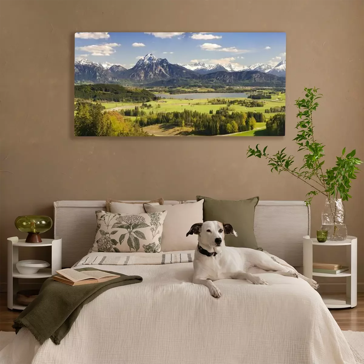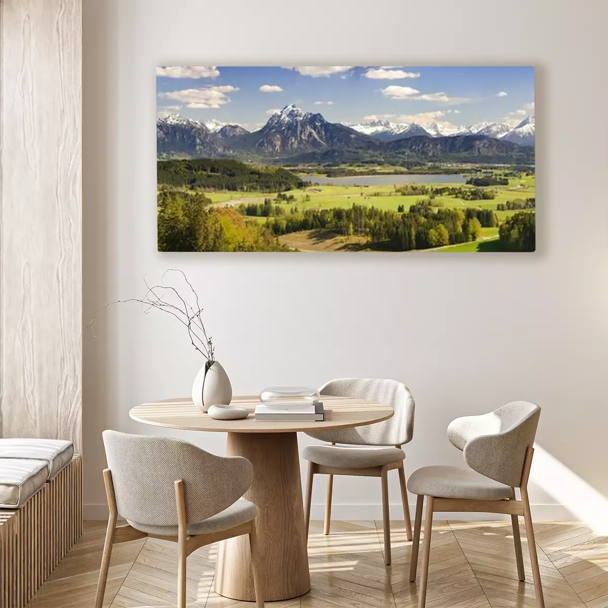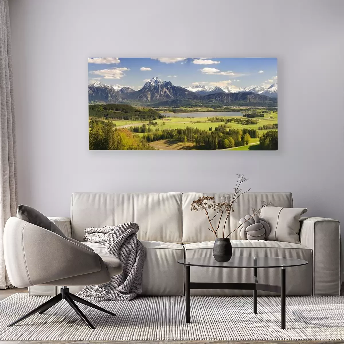 Bergpanorama mit Feldern und AlpenProblemlose Lieferung durch vertrauenswürdige Spediteure