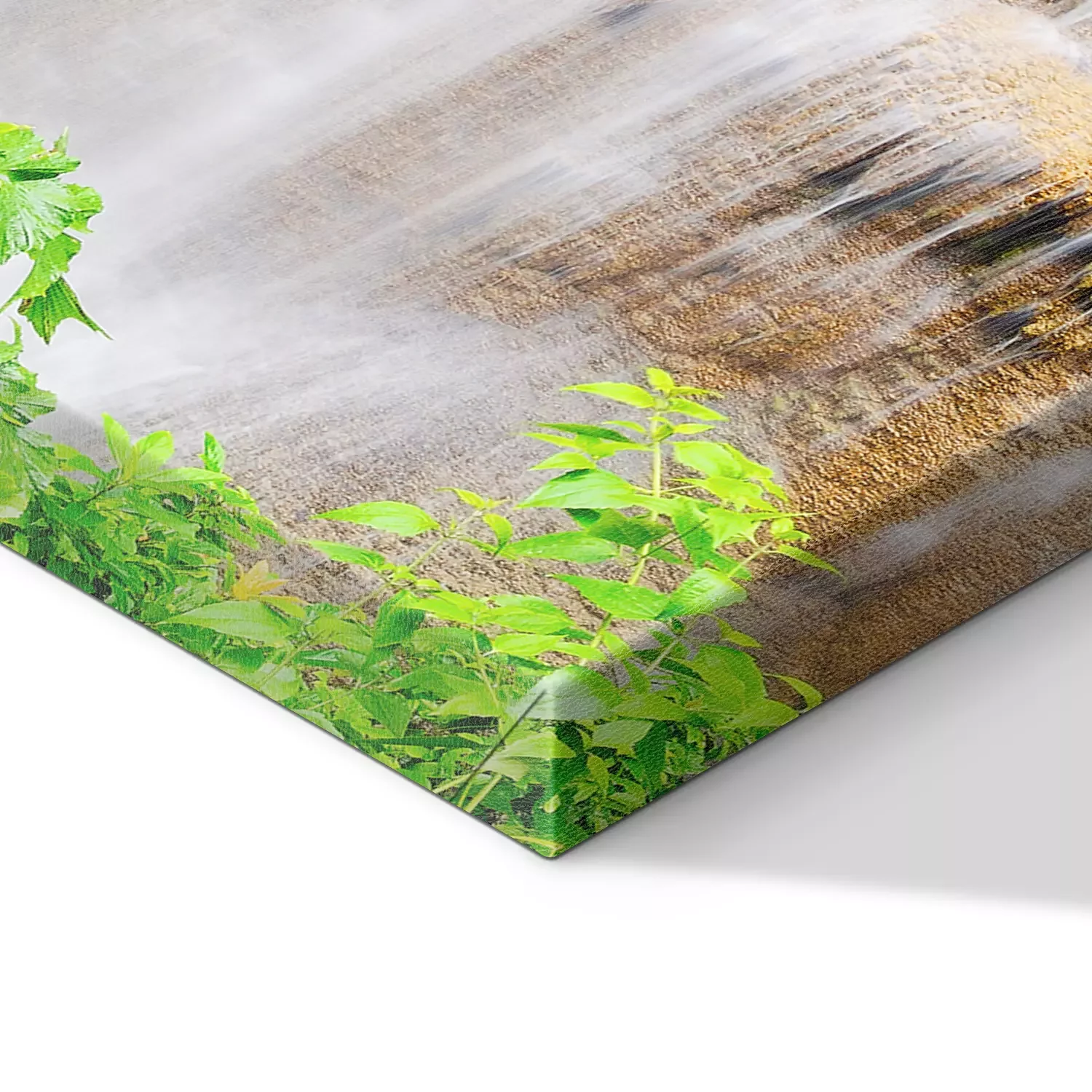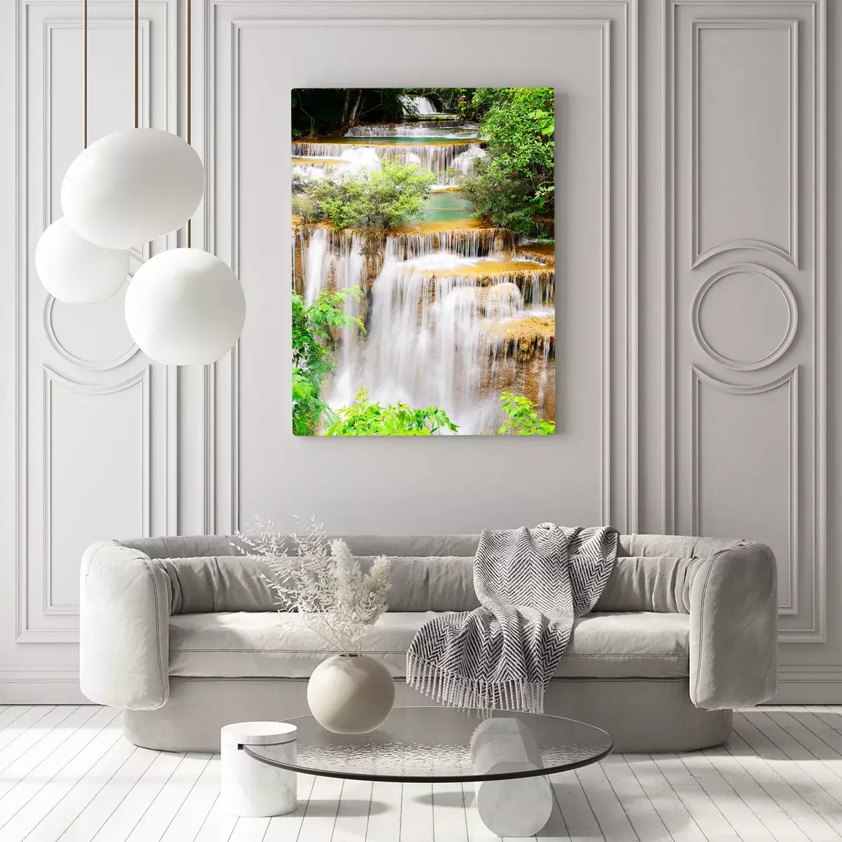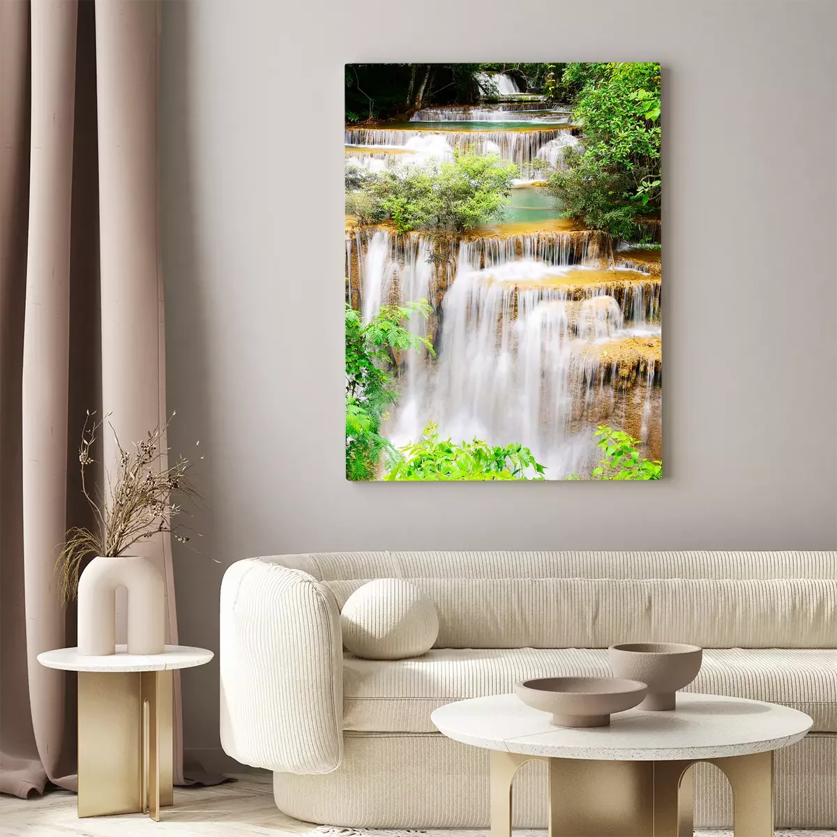 Paradiesischer wasserfall im kaskadenstil mit viel grün
