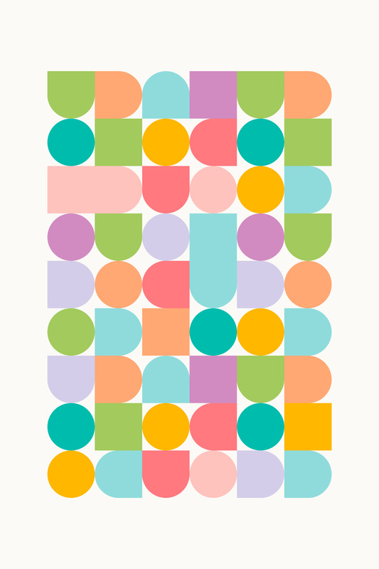 Bild: Pastellfarbene Retro-Komposition aus Kreisen und Formen