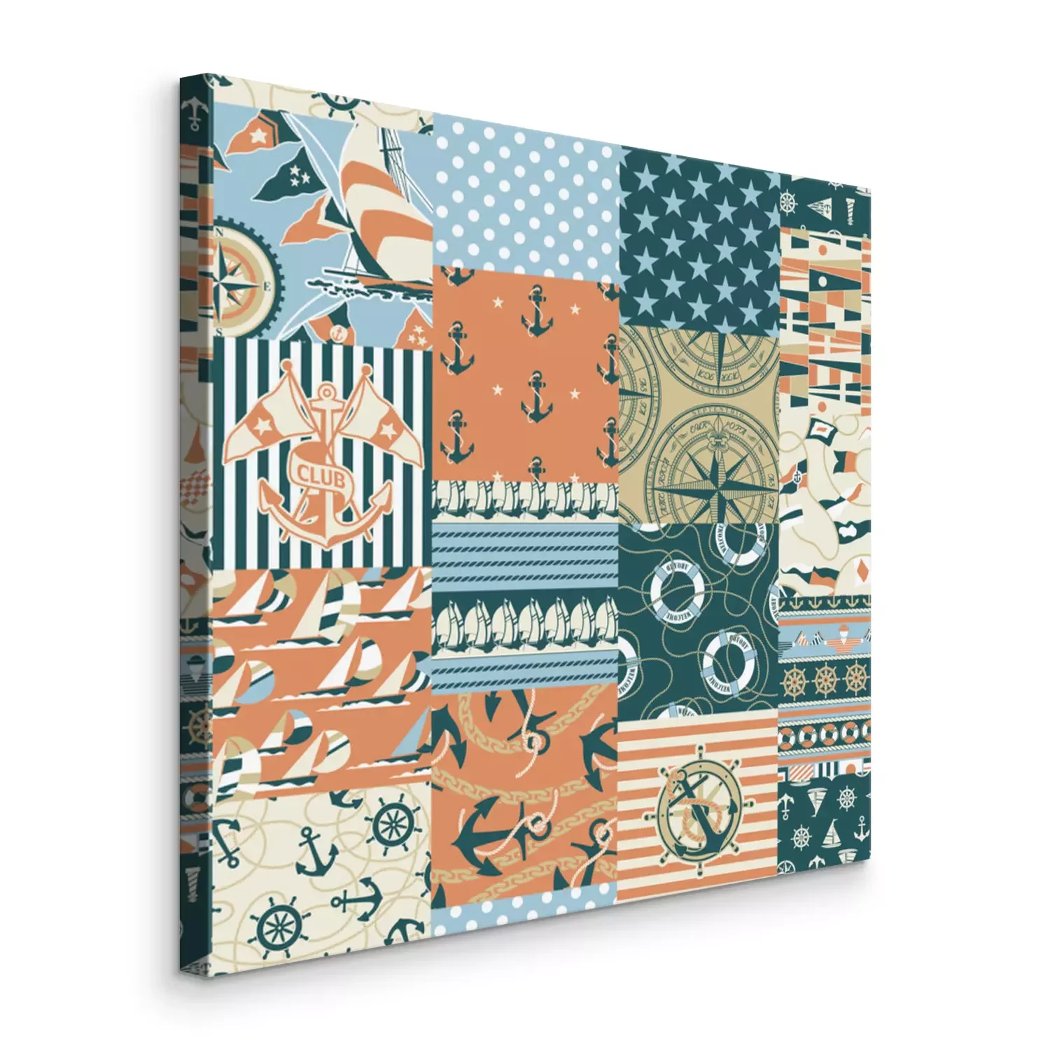 Nautical and sailing elements patchwork vector seamless pattern wallpaper