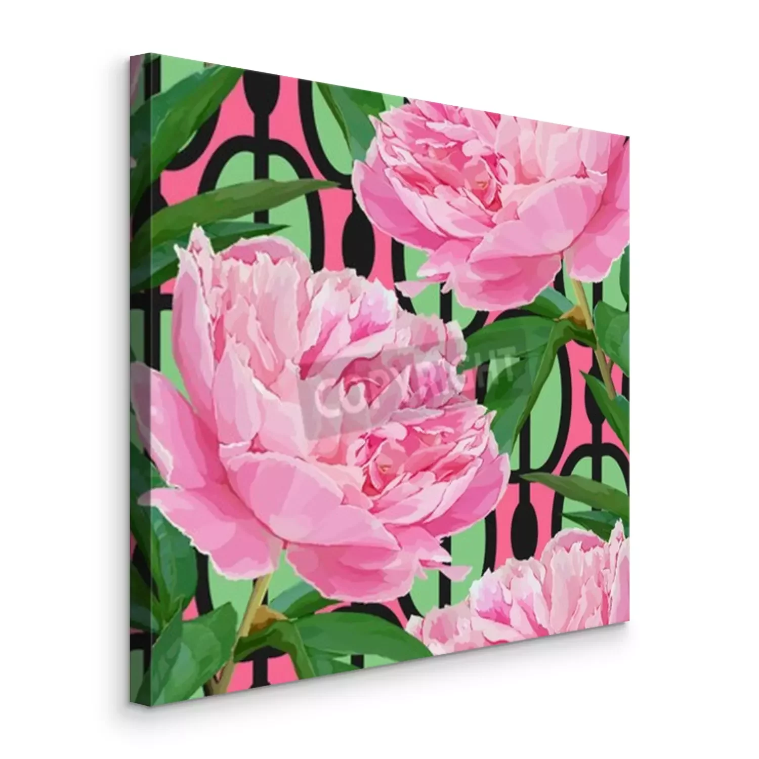 Bild Pfingstrosen und Blätter auf farbigem Hintergrund