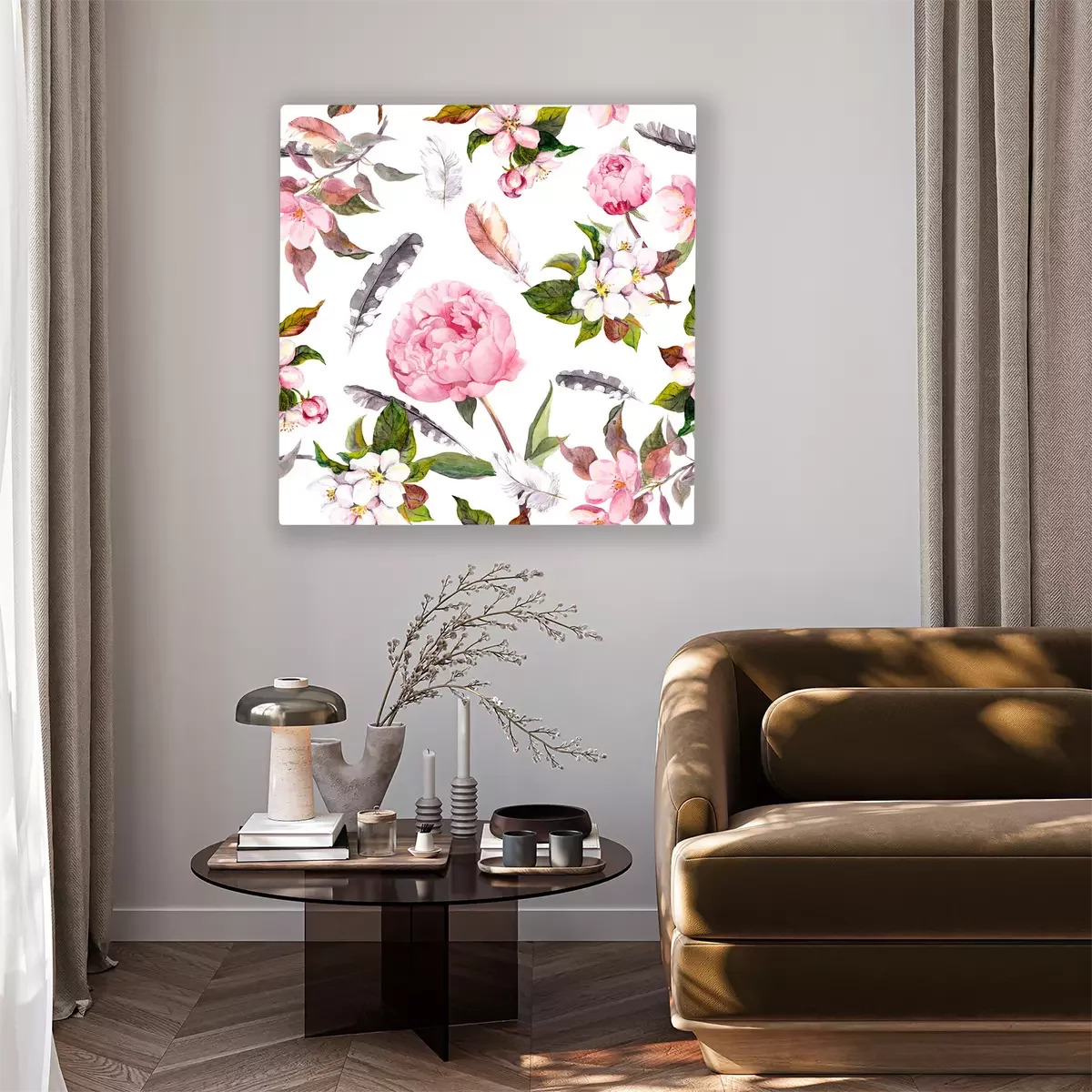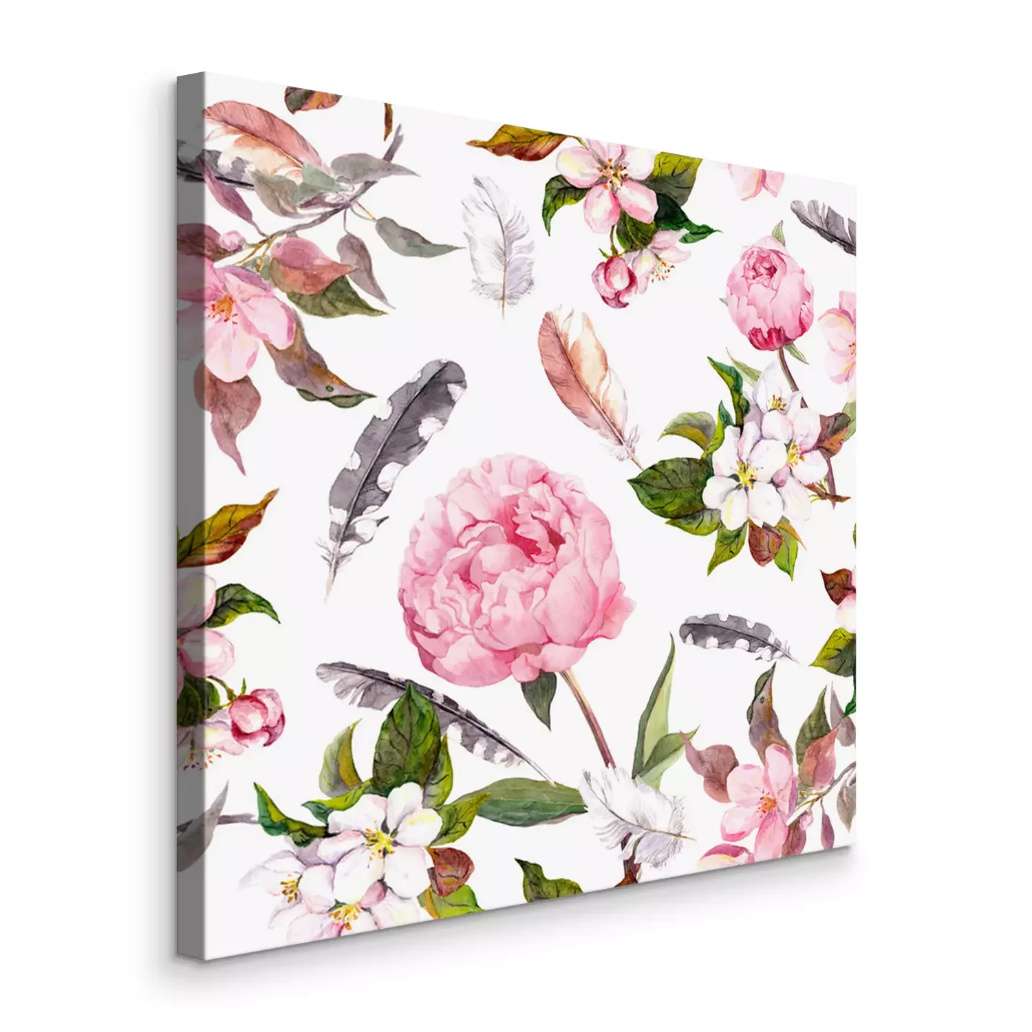 Bild: Pfingstrosen Vintage und Vogelfedern Grafik