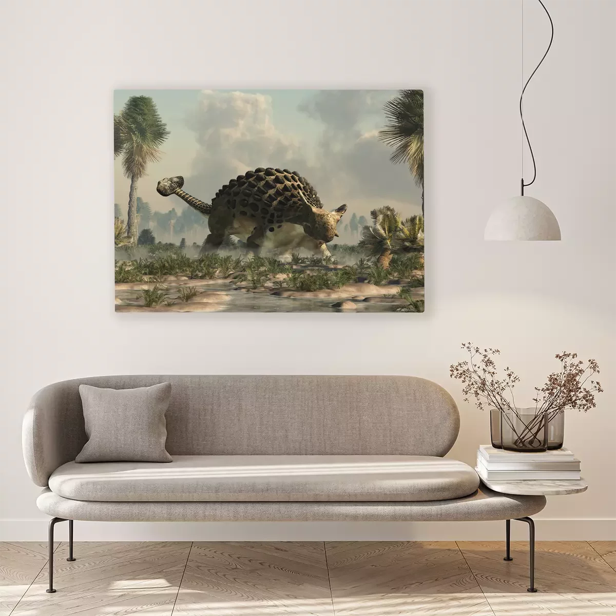 Bild Pflanzenfressender gepanzerter Dinosaurier auf einer wässrigen Ebene