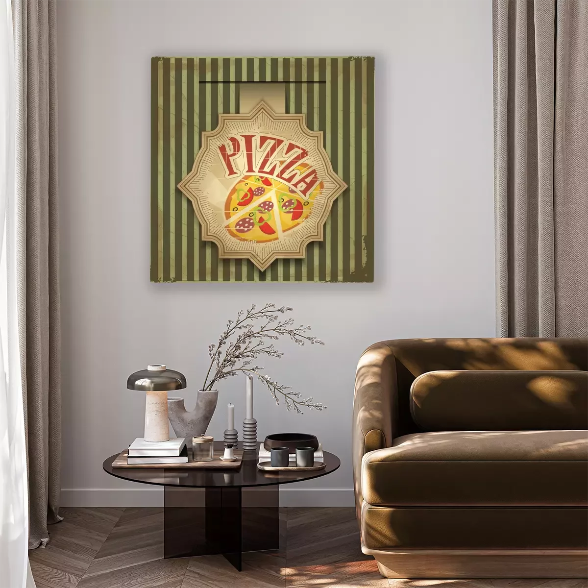 Stück Pizza auf Retro-Grafik