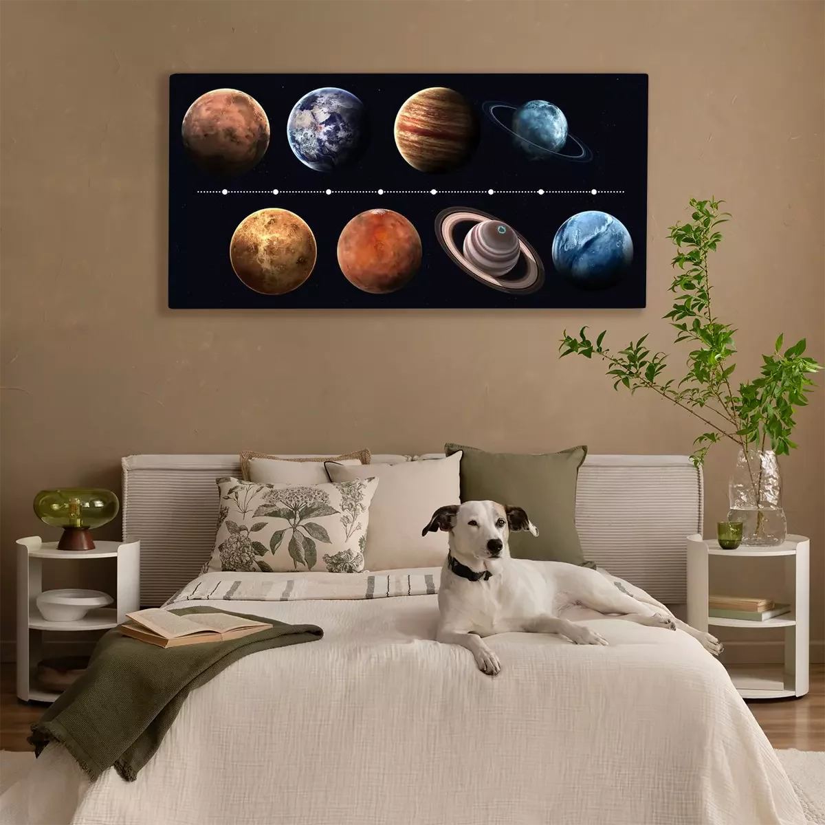 Planeten des Sonnensystems und die Oberfläche von einem von ihnen
