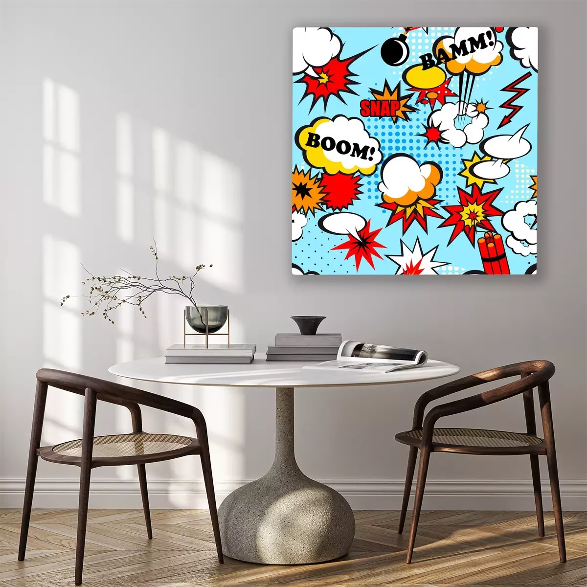 Das Motiv wird auf eine qualitativ hochwertige Leinwand gedruckt, die auf einen Blendrahmen gezogen wird. Da der Aufdruck die Seitenkanten bedeckt, muss das Bild nicht zusätzlich eingerahmt werden. Wir empfehlen außerdem Kompositionen aus mehreren Bildern, die ein harmonisches Ganzes bilden.