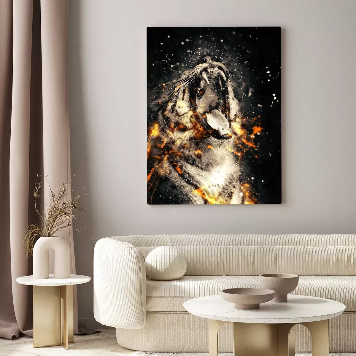 Bild: Porträt eines tigers in flammen
