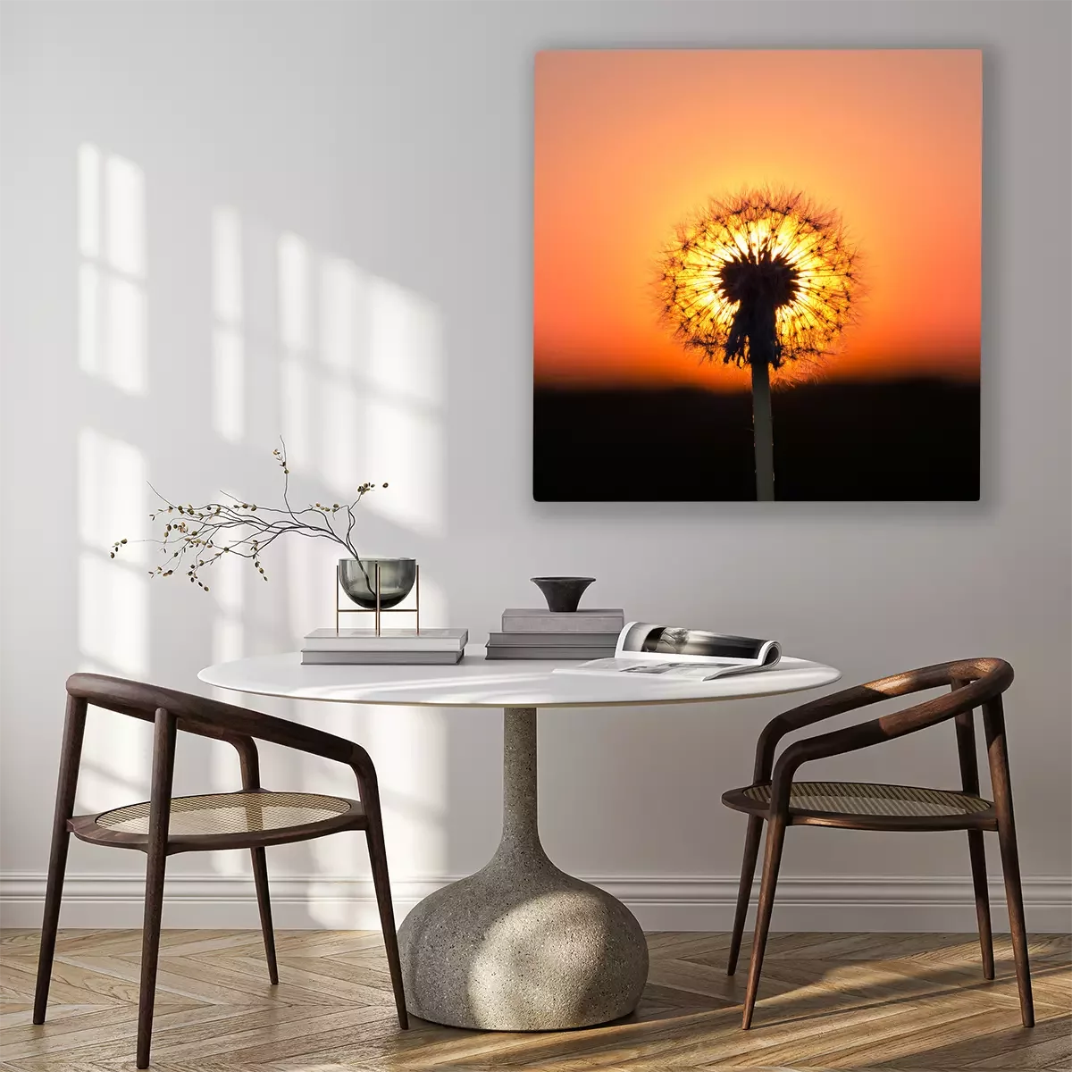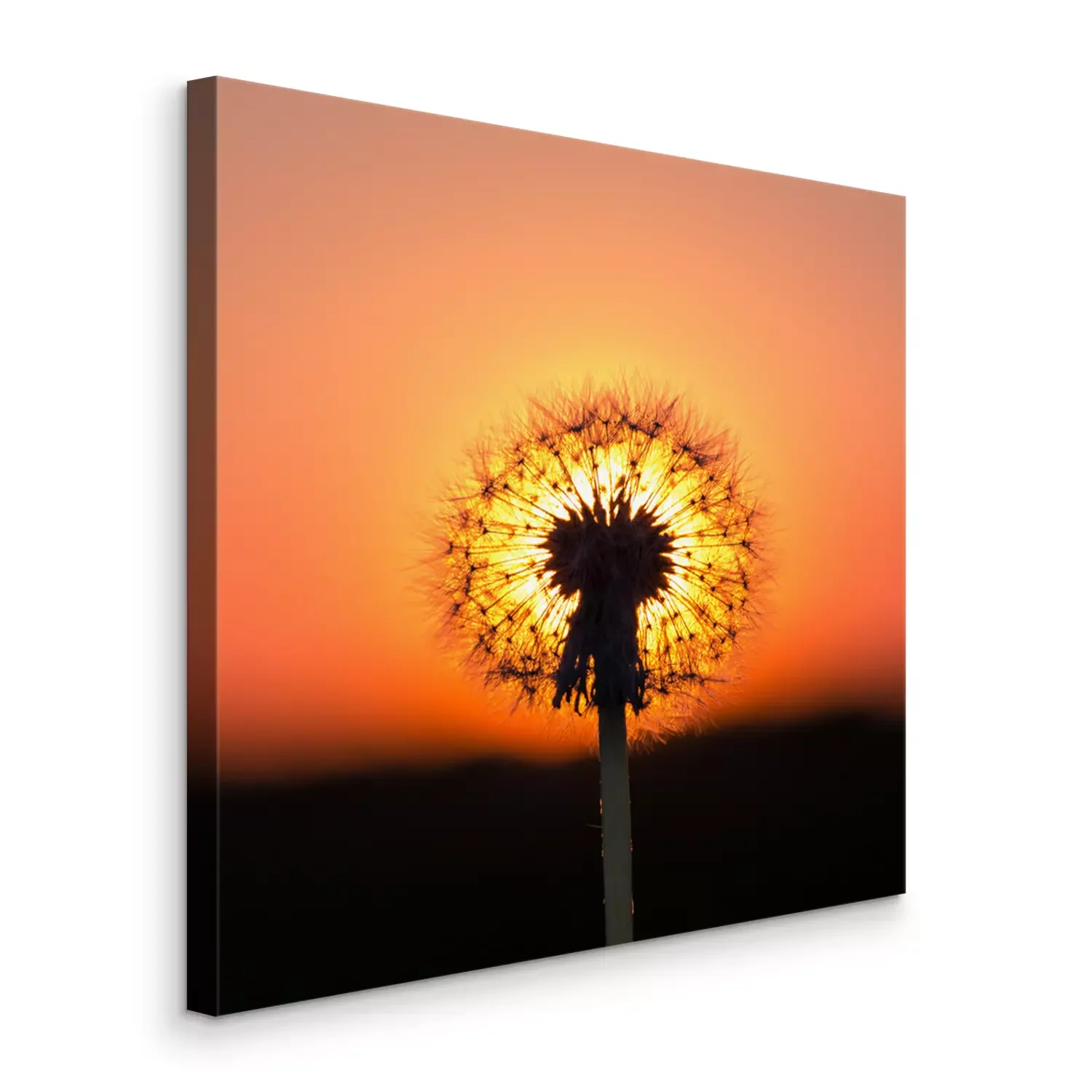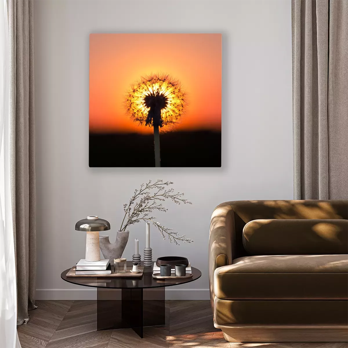 Bild Pusteblume vor dem Hintergrund eines orangefarbenen Himmels