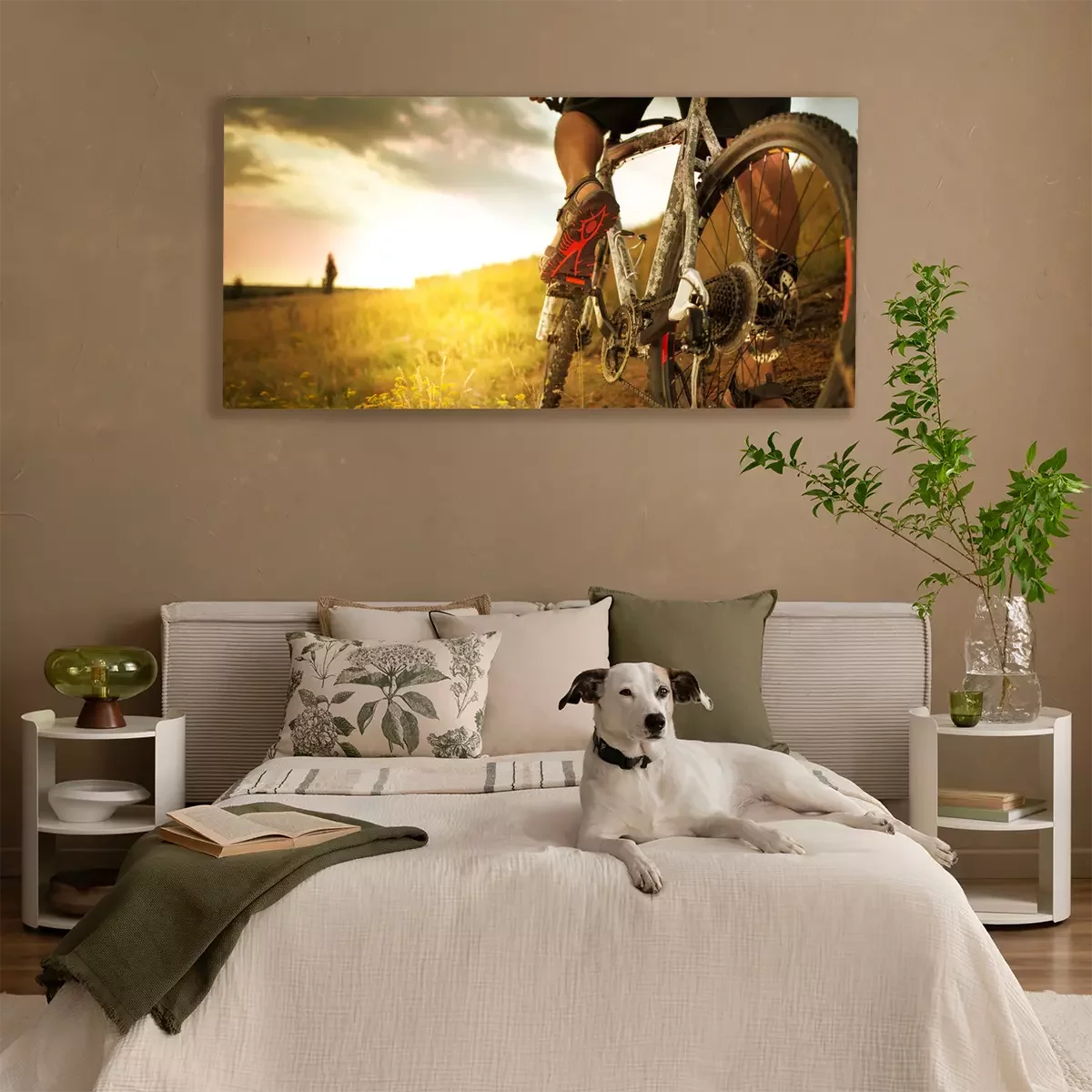 Bild Radfahrer am Hügel bei Sonnenuntergang