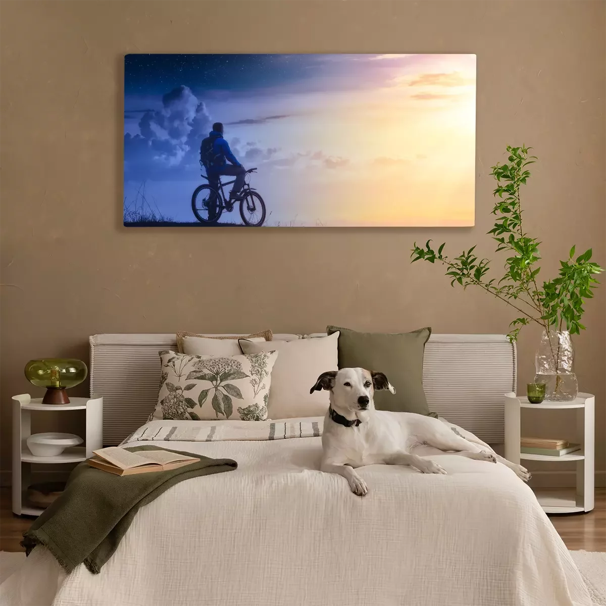 Bild Radfahrer auf dem Fahrrad bei Sonnenuntergang