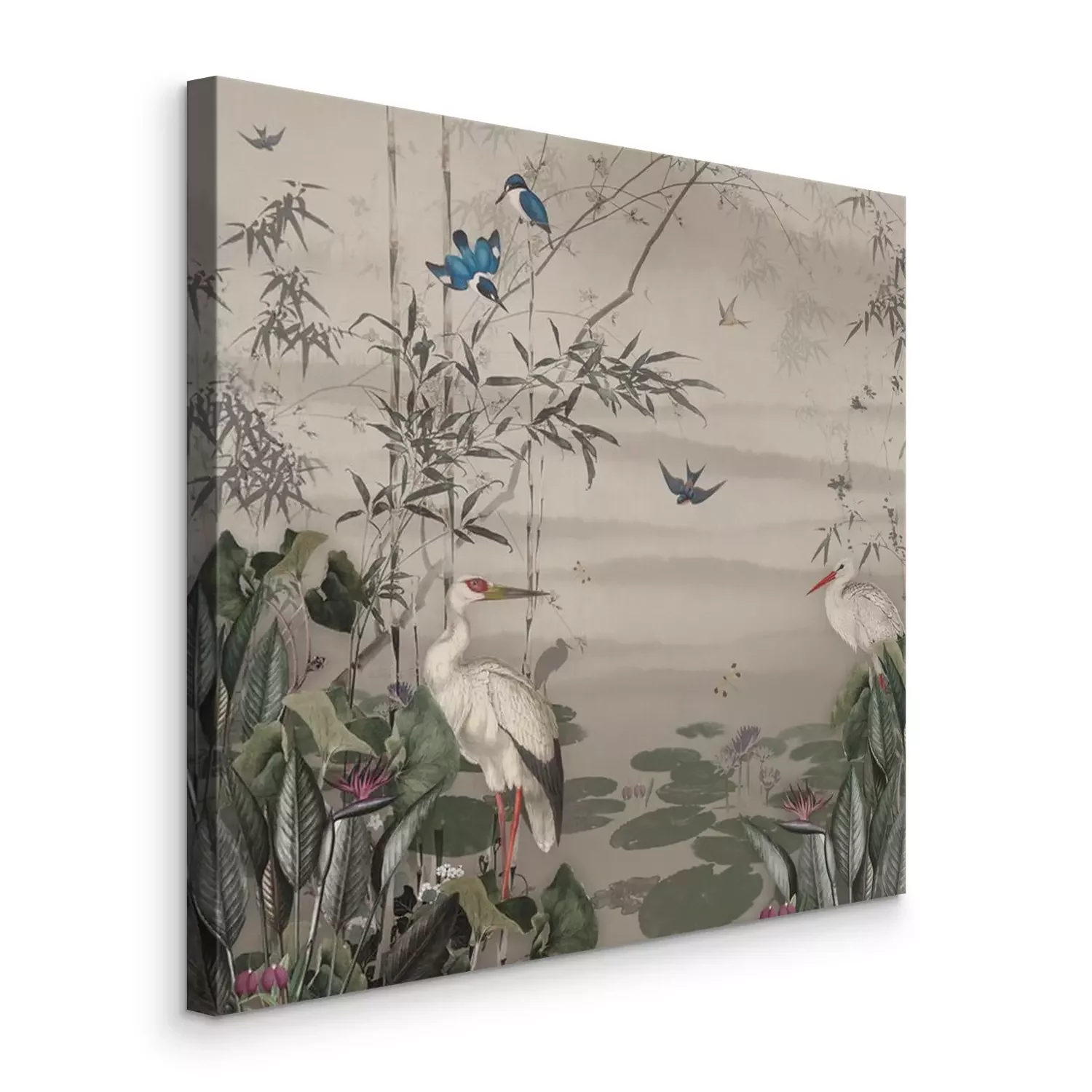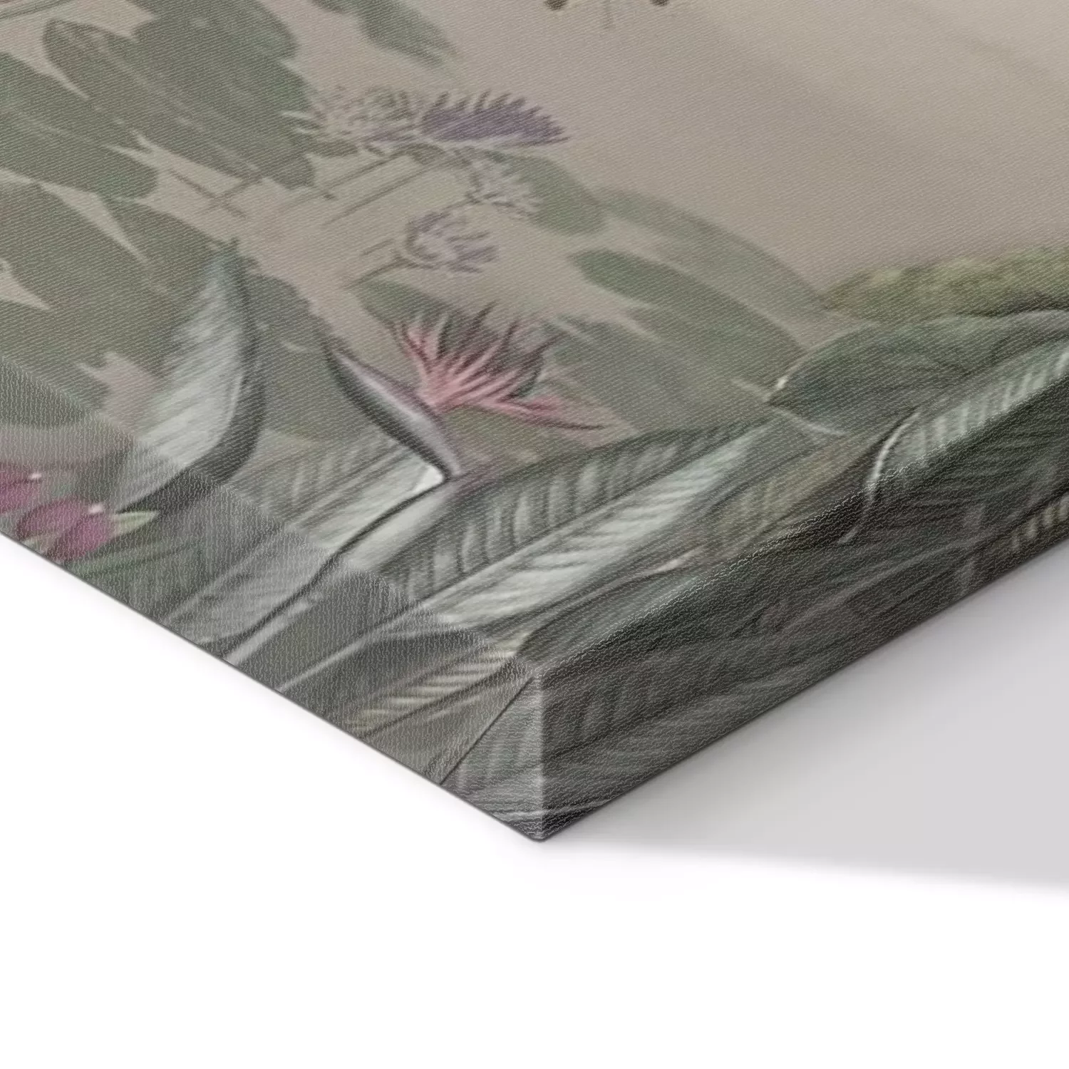 Wallpaper Jungle Tropical Forest Palm tree Birds Vintage Painting old