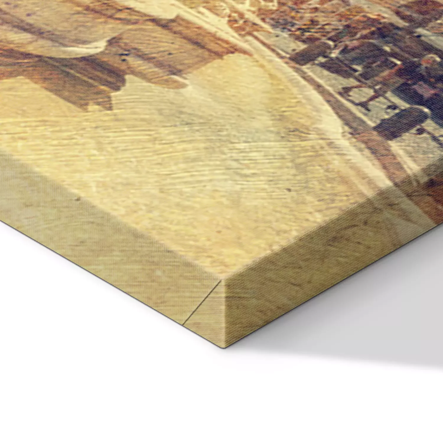 Das Motiv wird auf eine qualitativ hochwertige Leinwand gedruckt, die auf einen Blendrahmen gezogen wird. Da der Aufdruck die Seitenkanten bedeckt, muss das Bild nicht zusätzlich eingerahmt werden. Wir empfehlen außerdem Kompositionen aus mehreren Bildern, die ein harmonisches Ganzes bilden.