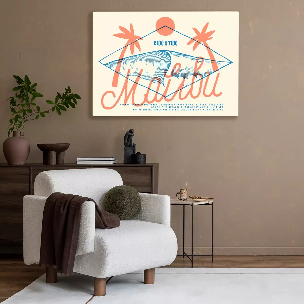 Retro-surfgrafik mit wellen- und palmenmotiv