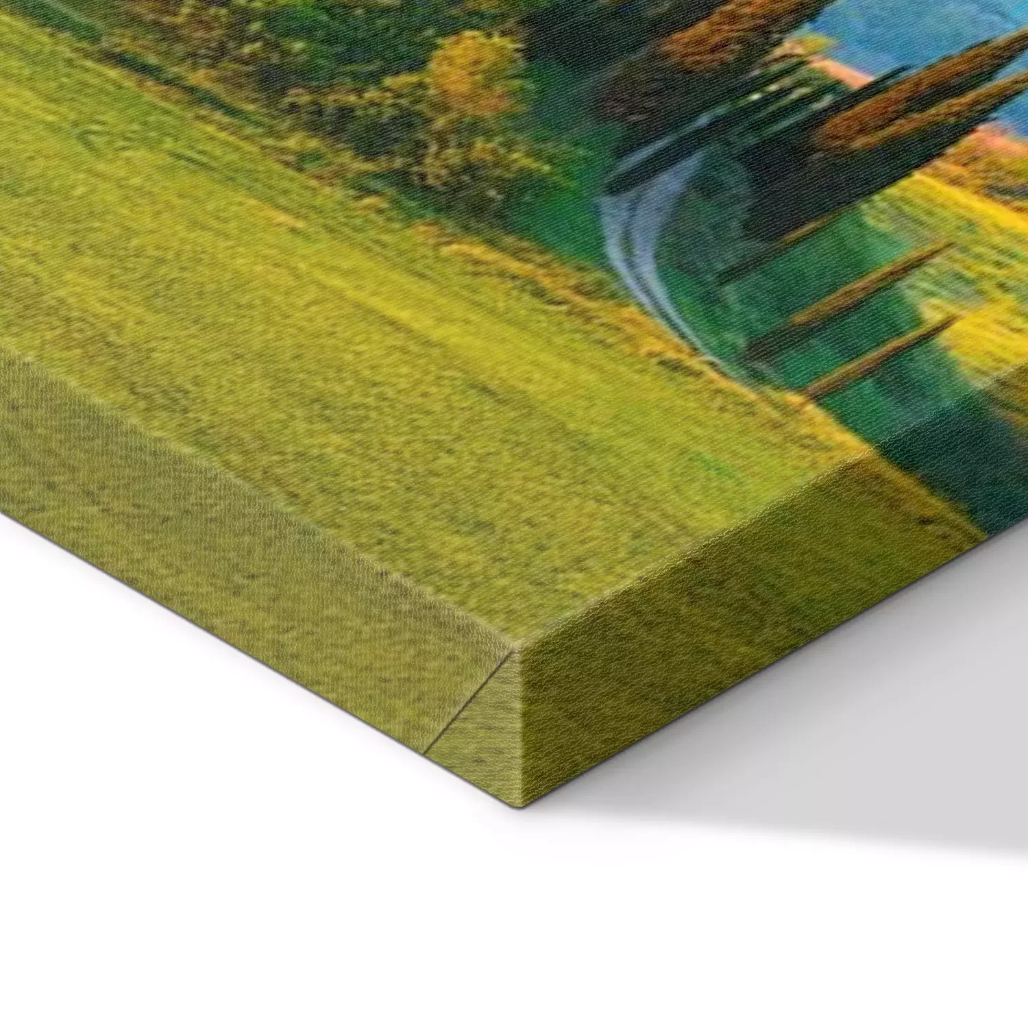 Das Motiv wird auf eine qualitativ hochwertige Leinwand gedruckt, die auf einen Blendrahmen gezogen wird. Da der Aufdruck die Seitenkanten bedeckt, muss das Bild nicht zusätzlich eingerahmt werden. Wir empfehlen außerdem Kompositionen aus mehreren Bildern, die ein harmonisches Ganzes bilden.